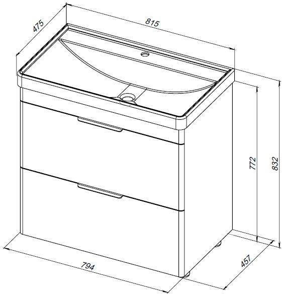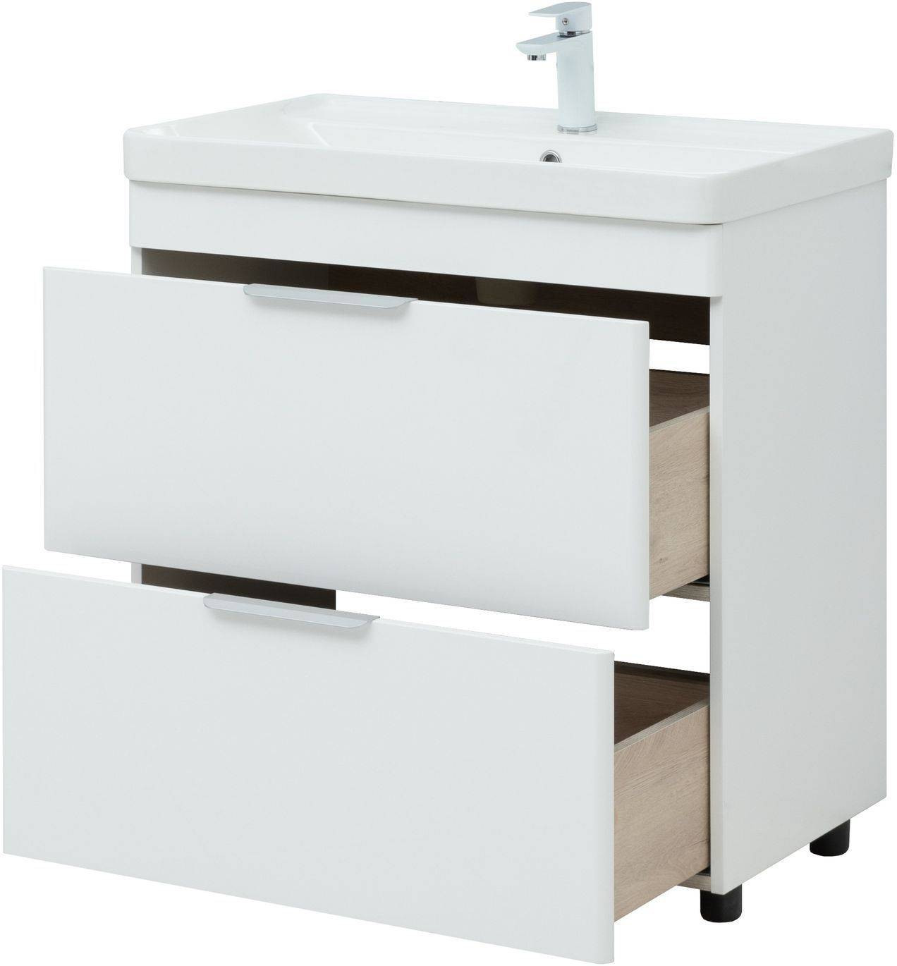 Тумба с раковиной Aquanet Ирис new 80 белый глянец (2 ящика)