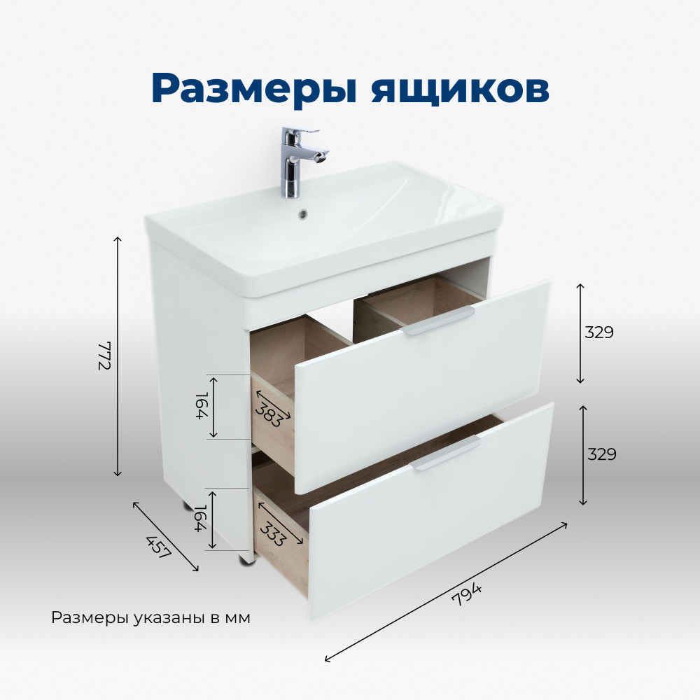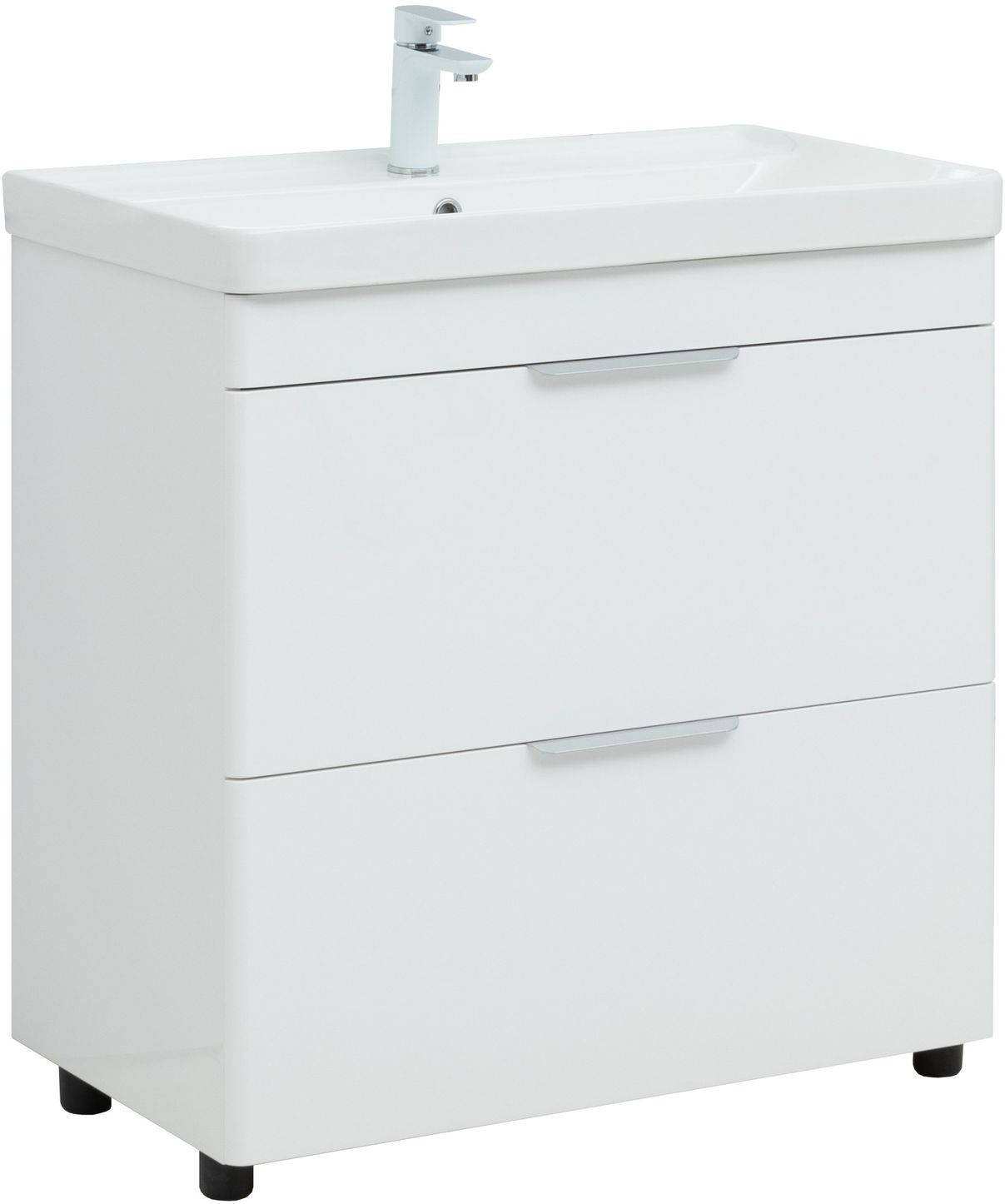 Тумба с раковиной Aquanet Ирис new 80 напольная 2 ящ. цв.белый глянец