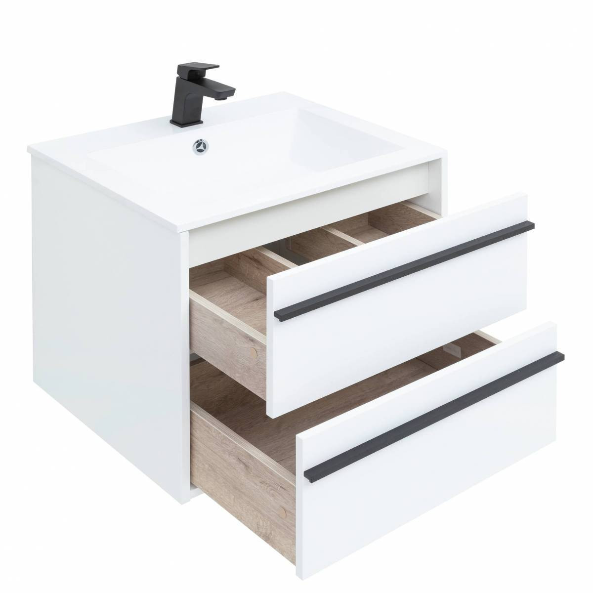 Тумба с раковиной Aquanet Lino 60 белый матовый - яркий пример мебели в эко-стиле. У нее удобная зона хранения: два выдвижных ящика, оборудованных доводчиками, словно утоплены внутрь корпуса. Тонкие изящные ручки во всю ширину ящиков. Именно они находятся в одной плоскости с боковыми стенками. Выглядит стильно. К тому же, безопасно, так как нет выступающих деталей. Кстати, ручки отечественного производства. Сделаны из алюминия, чтобы исключить возможность коррозии, по заказу Aquanet специально для этой коллекции. Сверху на них нанесено эмалевое покрытие. Сверху – раковина «Электра» из литьевого мрамора. У нее максимально глубокая и объемная чаша, но все внутренние детали скруглены, так что приведение ее в порядок не составит труда, так как грязь не будет скапливаться в уголках. Корпус и фасады тумбы шириной 60 см – из влагостойкого ЛДСП, внутренняя часть ящиков выполнена в цвете «дуб кантри», что создает легкий контраст белоснежным деталям корпуса и фасада.