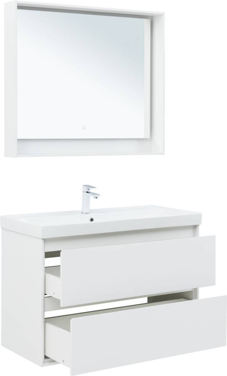 Тумба с раковиной Aquanet Милан 100 белый глянец