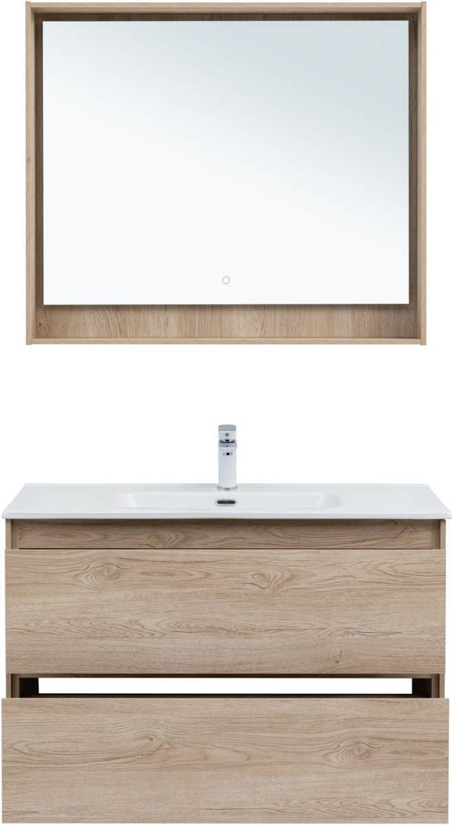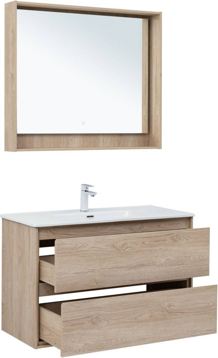 Тумба с раковиной Aquanet Милан 100 дуб светлый + раковина Flat