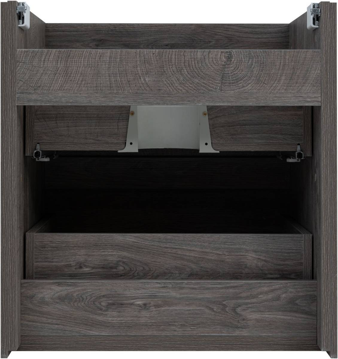 Кроме того, надёжные навесы, способные выдерживать нагрузки до 130 кг, обеспечивают уверенную поддержку раковины и всего оборудования. Внутреннее пространство тумбы организовано с умом: выдвижные ящики из ВЛДСП имеют прочное дно и направляющие частичного выдвижения, что делает их идеальными для хранения туалетных принадлежностей. Специальная пластиковая вставка под сифон в сером цвете завершает функционал тумбы, сохраняя при этом чистоту и порядок в ванной комнате.
