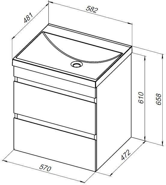 Тумба с раковиной Aquanet Нота New 60 белый глянец