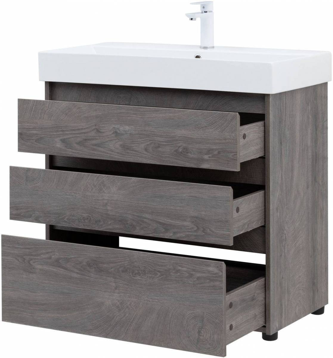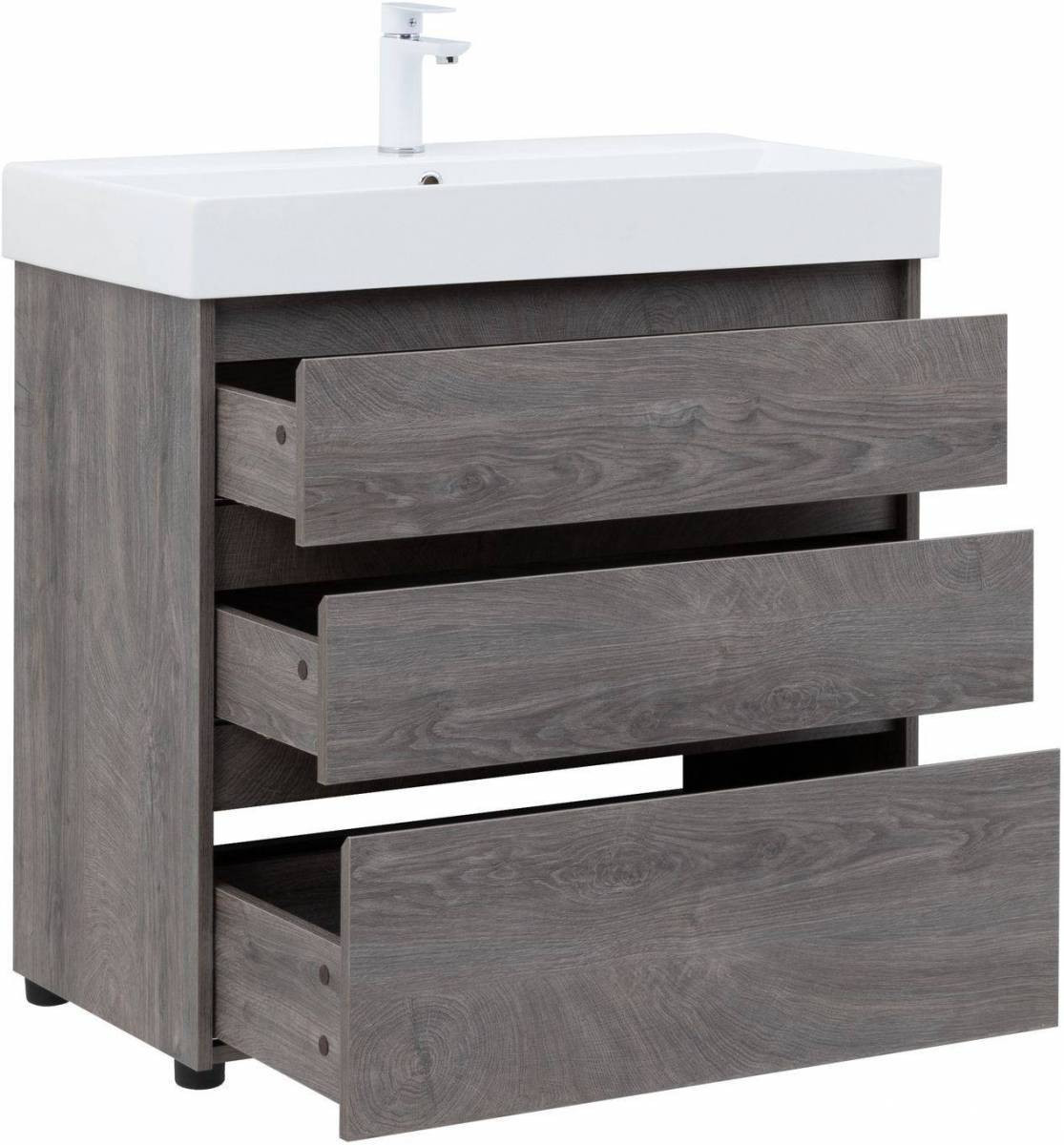 Тумба с раковиной Aquanet Nova Lite 85 дуб рошелье (3 ящика)