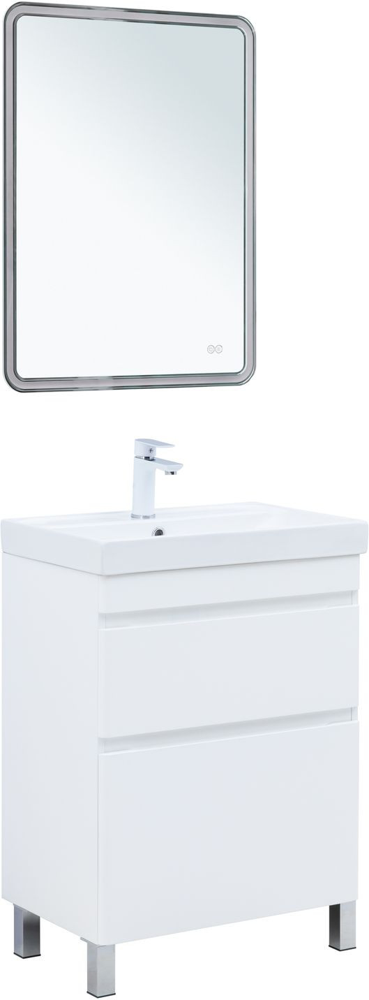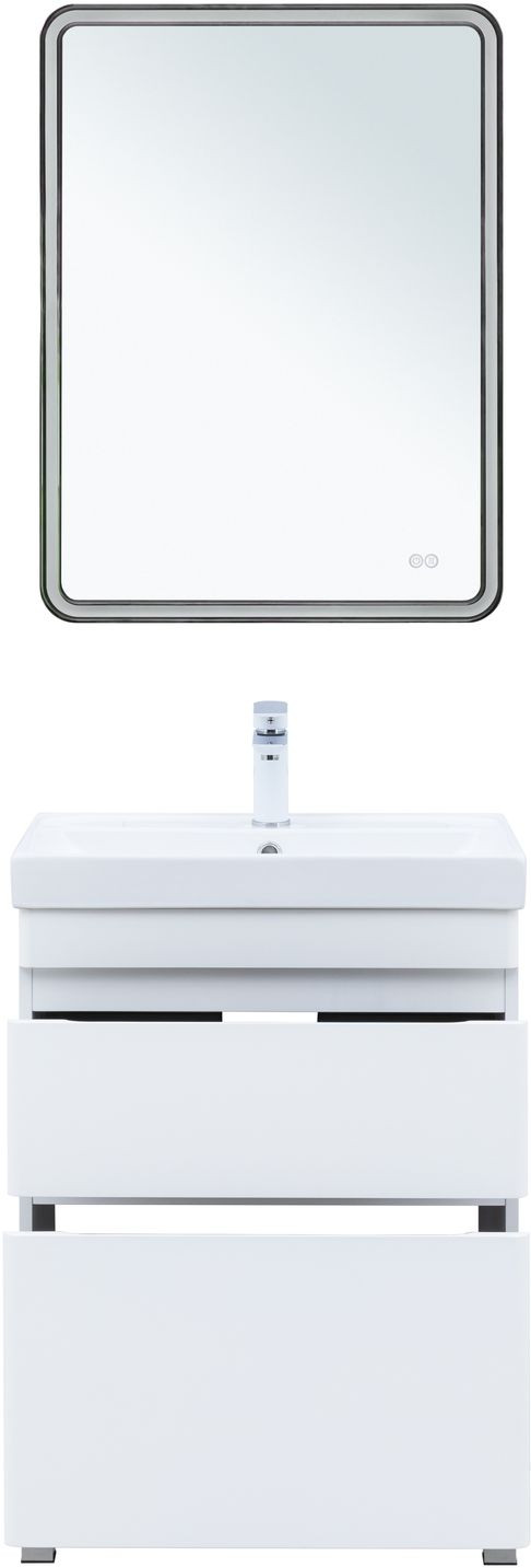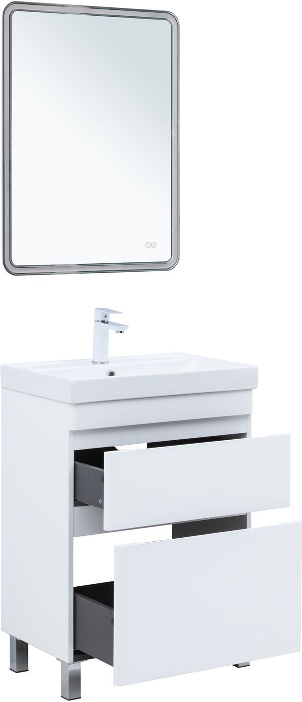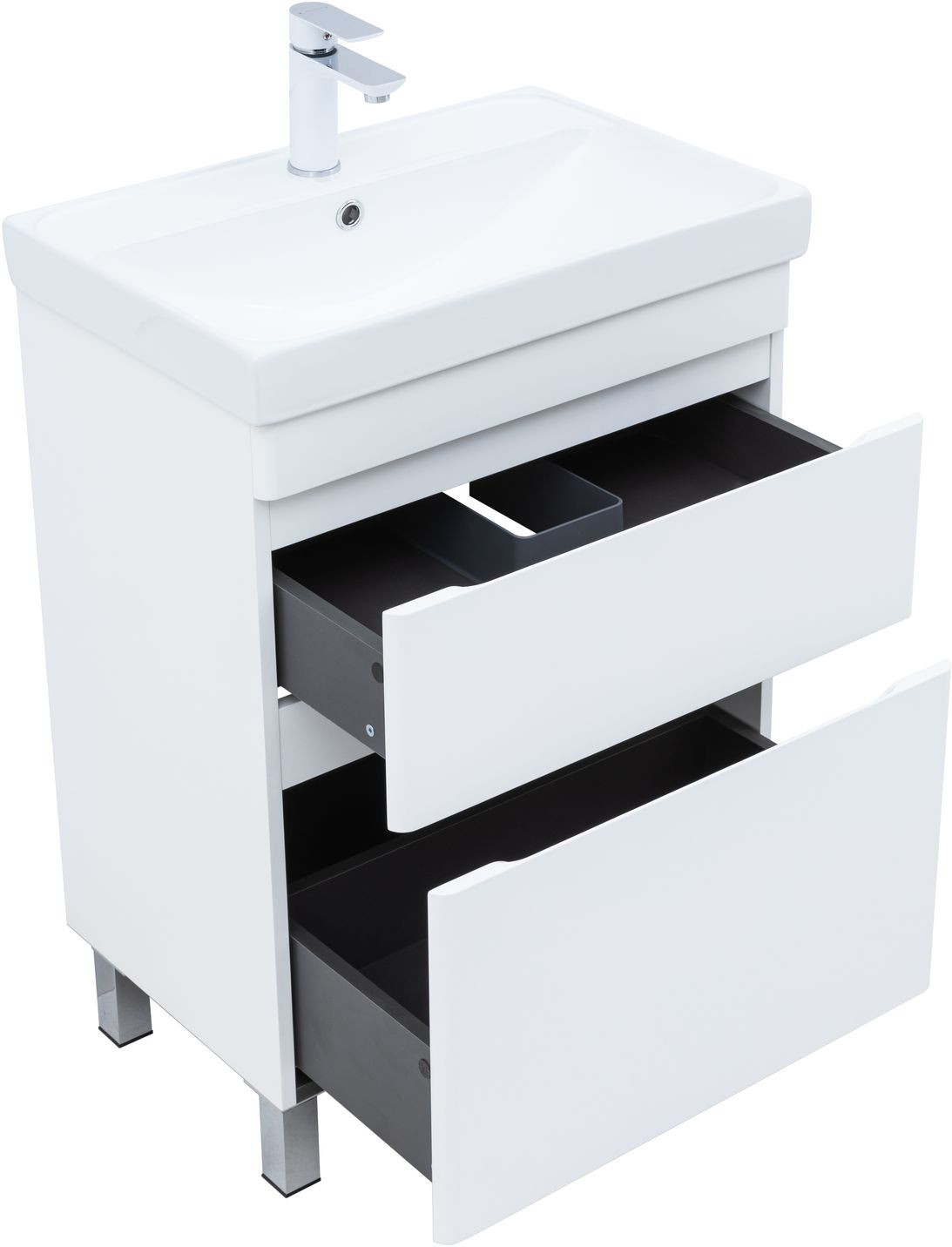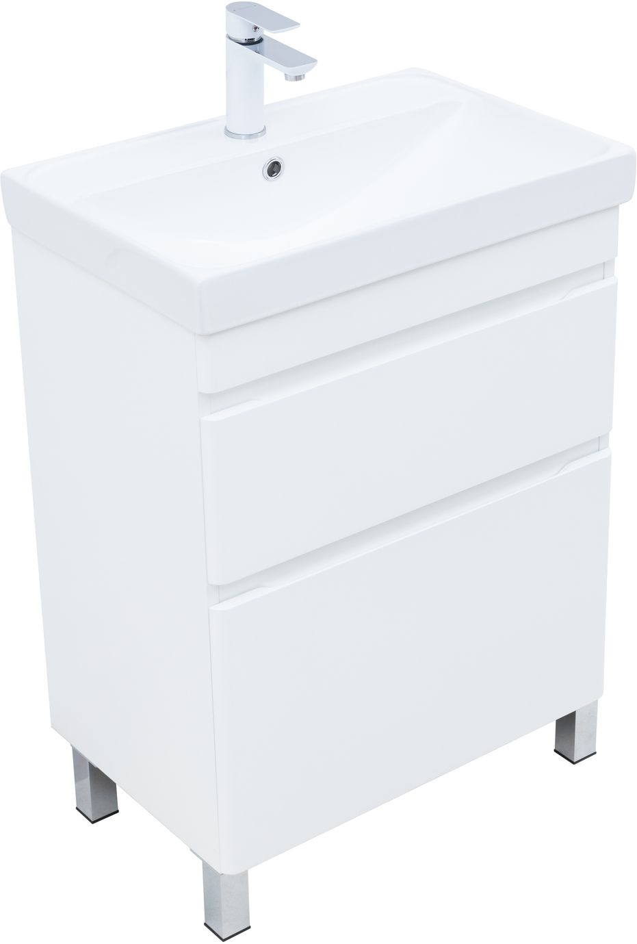 Тумба с раковиной Aquanet Слим 60 напольная 2 ящ. цв.белый сатин