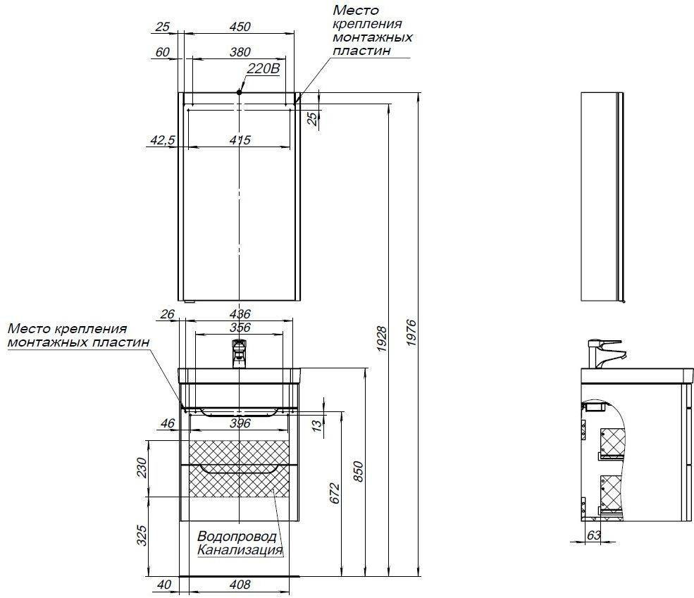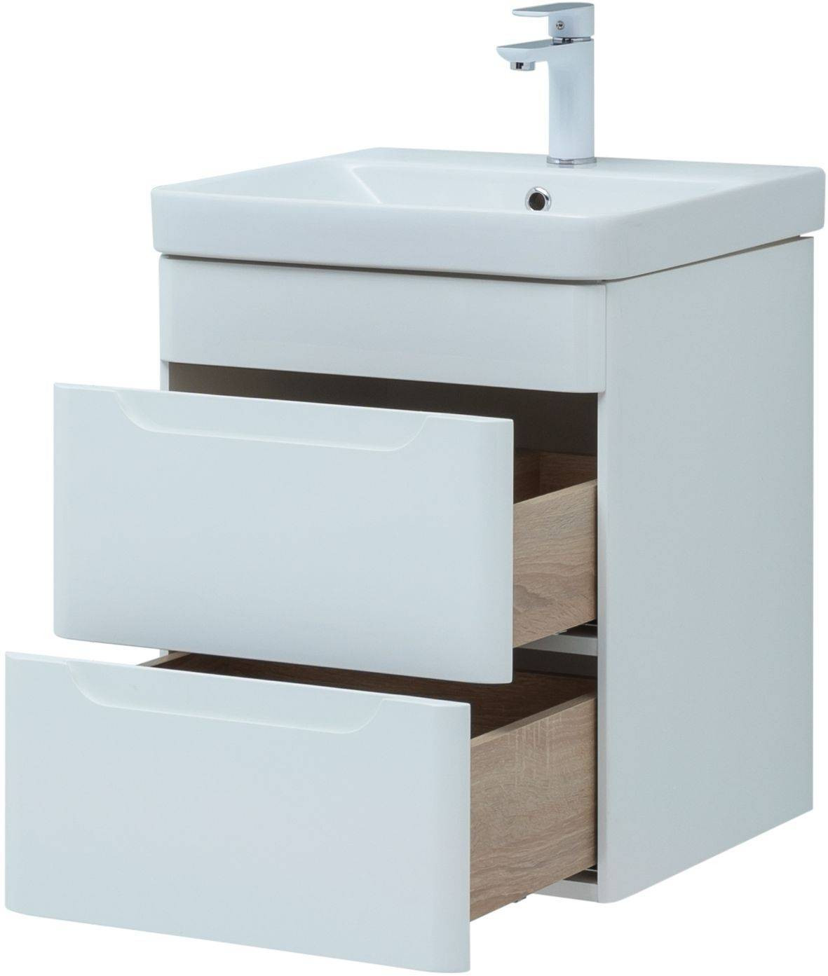Тумба с раковиной Aquanet София 50 белый глянец (2 ящика)