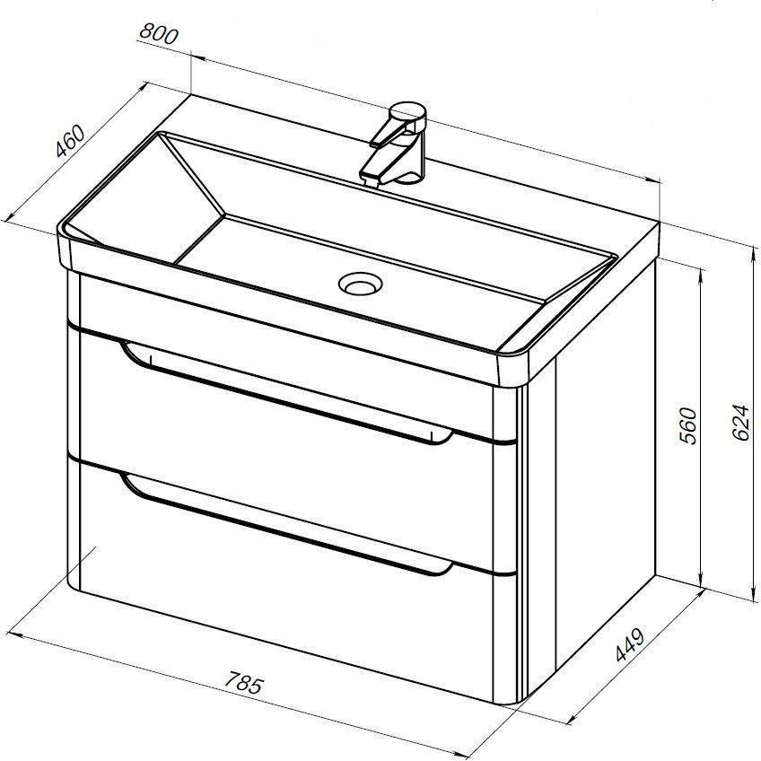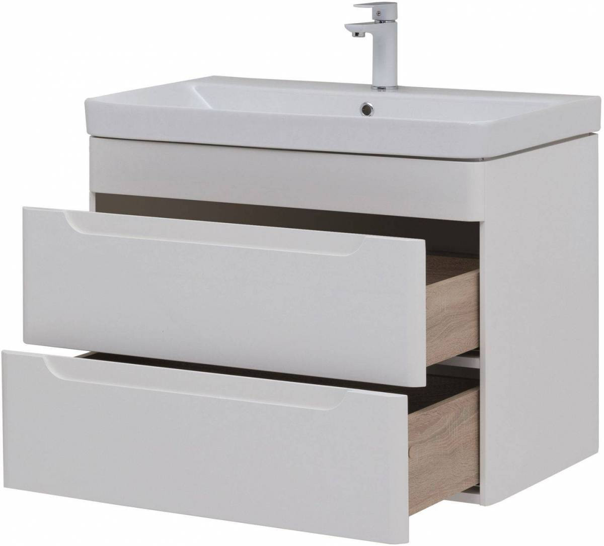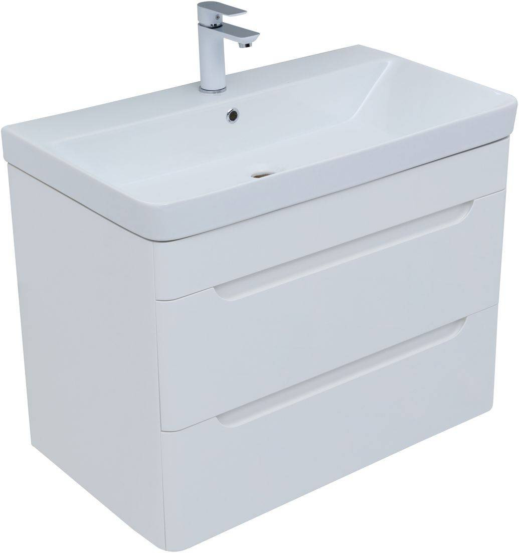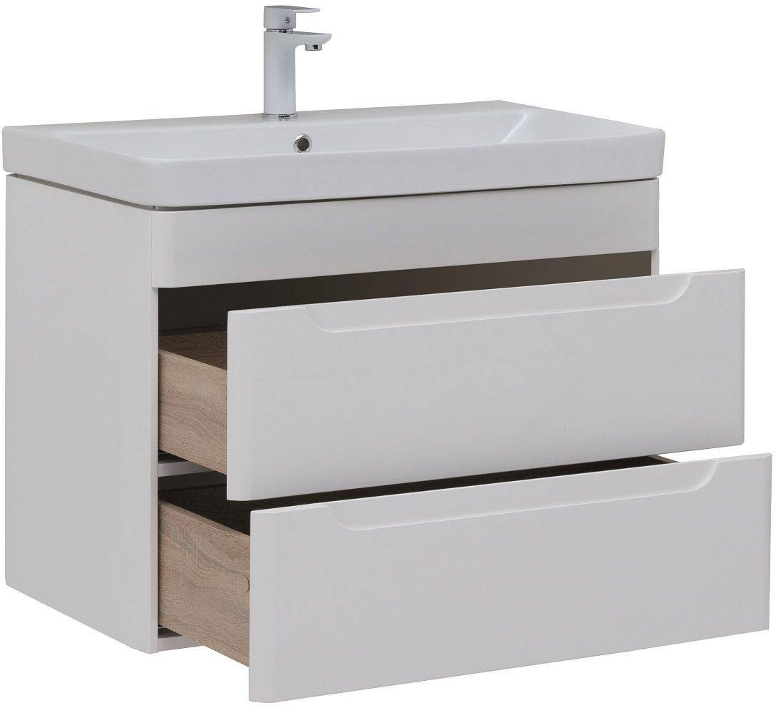 Тумба с раковиной Aquanet София 80 белый глянец (2 ящика)