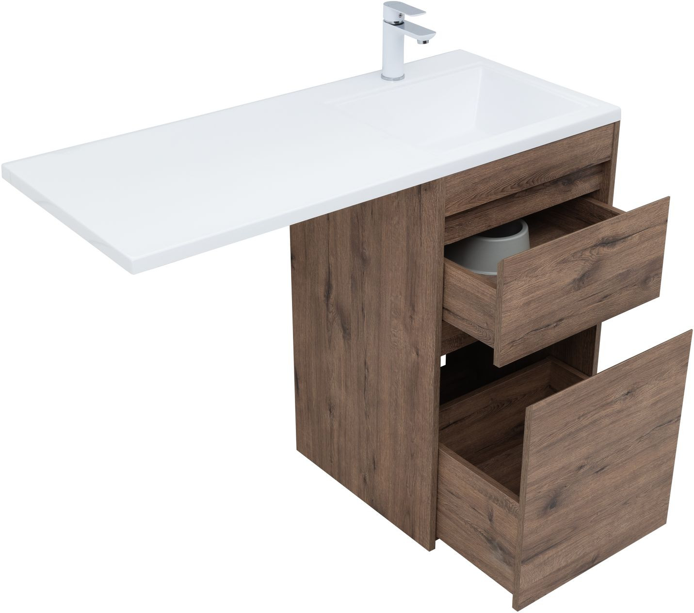 Тумба с раковиной Aquanet Токио 110 L напольная 2 ящика, цв. дуб веллингтон