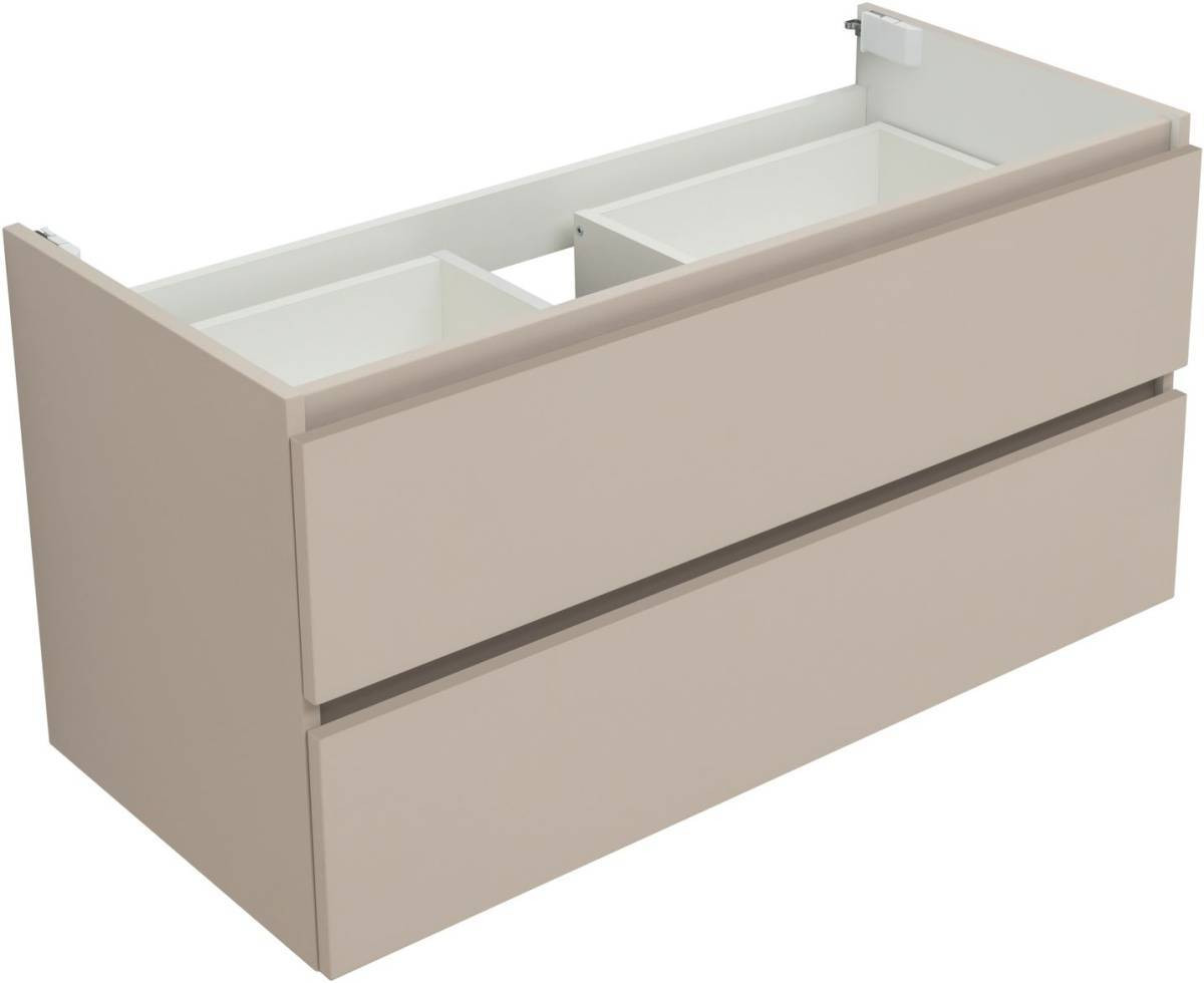 Фасады и корпуса из суперматовой пленки ПВХ обладают повышенной прочностью и эффектом «Soft touch», обеспечивая не только прекрасный внешний вид, но и приятные тактильные ощущения. Тумба оснащена двумя ящиками с механизмом доводчика, что обеспечивает плавное и бесшумное закрытие, а также высокую функциональность.