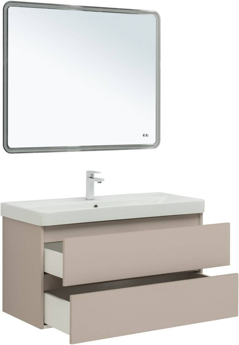 Тумба с раковиной Aquanet Вега 2.0 100 бежевый + раковина Ирис