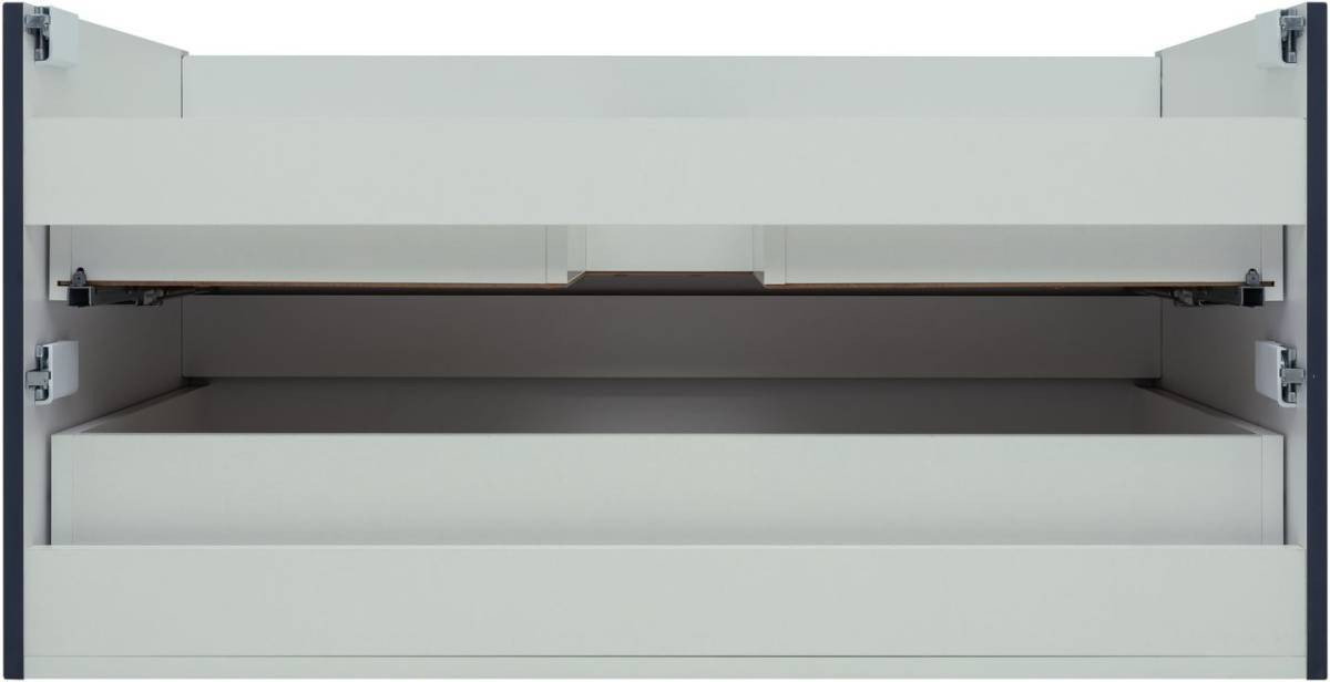 Фасады и корпуса из суперматовой пленки ПВХ обладают повышенной прочностью и эффектом «Soft touch», обеспечивая не только прекрасный внешний вид, но и приятные тактильные ощущения. Тумба оснащена двумя ящиками с механизмом доводчика, что обеспечивает плавное и бесшумное закрытие, а также высокую функциональность.