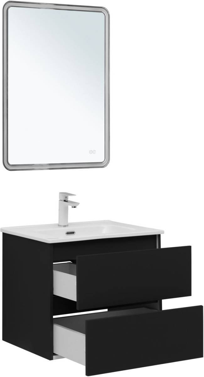 Тумба с раковиной Aquanet Вега 2.0 60 черный + раковина Flat