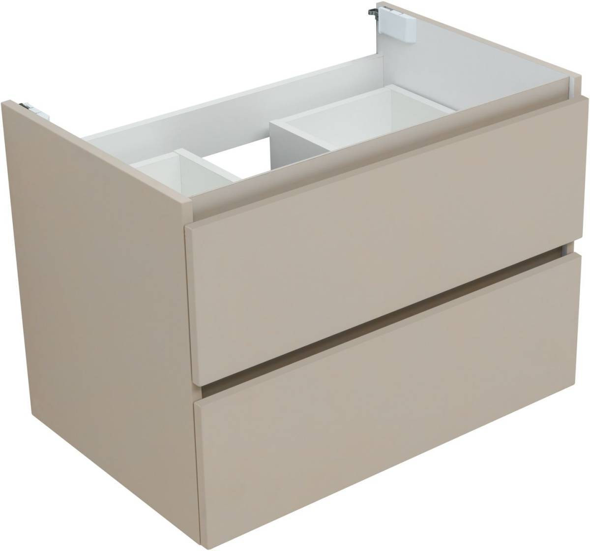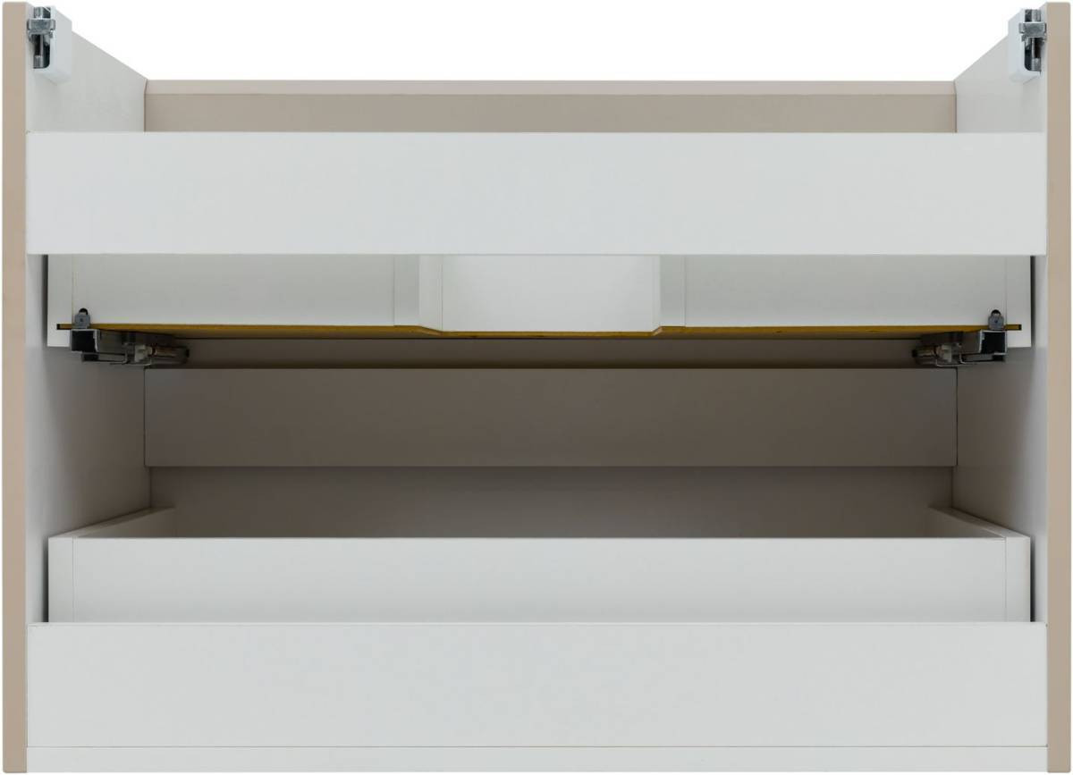 Фасады и корпуса из суперматовой пленки ПВХ обладают повышенной прочностью и эффектом «Soft touch», обеспечивая не только прекрасный внешний вид, но и приятные тактильные ощущения. Тумба оснащена двумя ящиками с механизмом доводчика, что обеспечивает плавное и бесшумное закрытие, а также высокую функциональность.