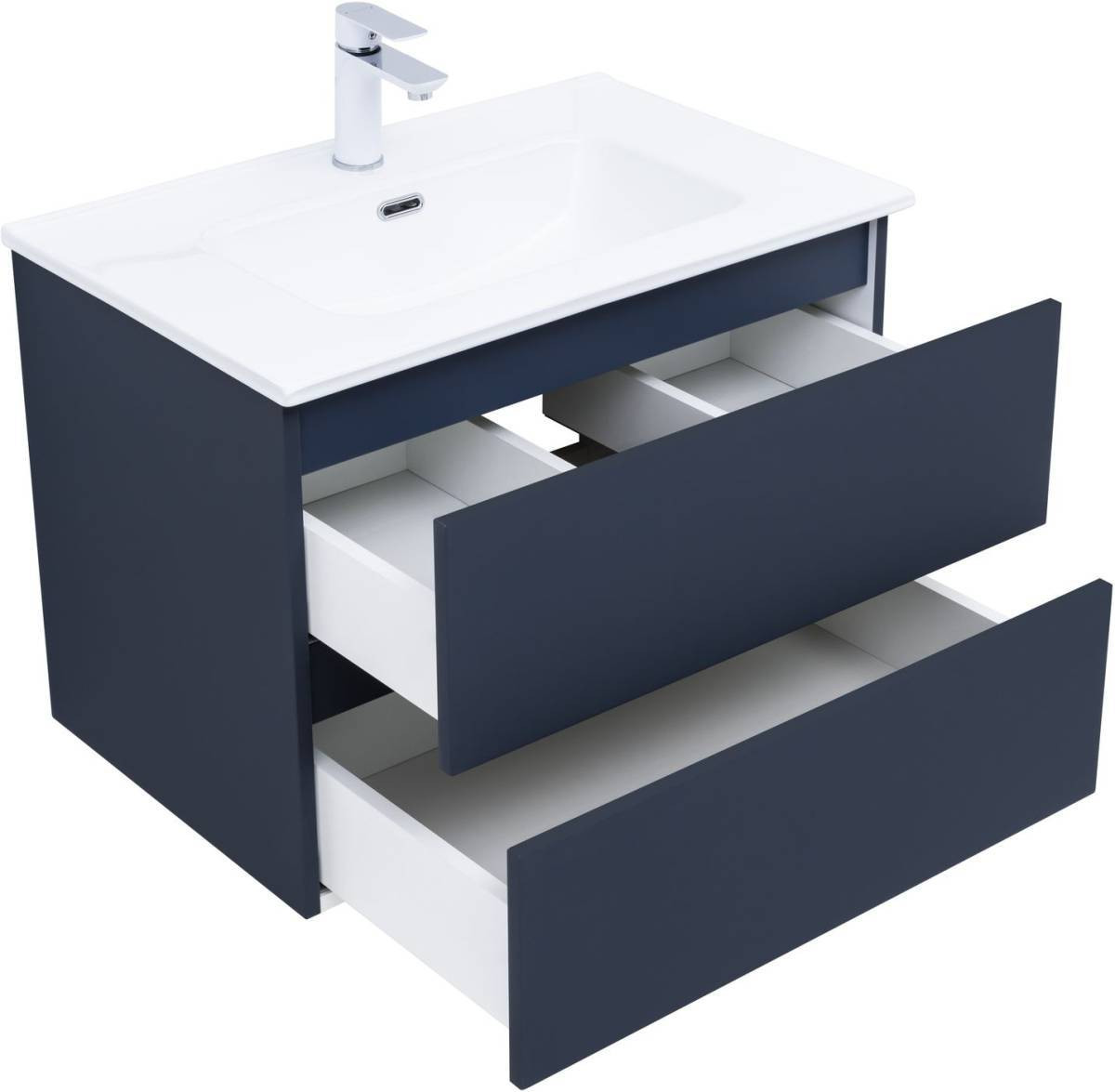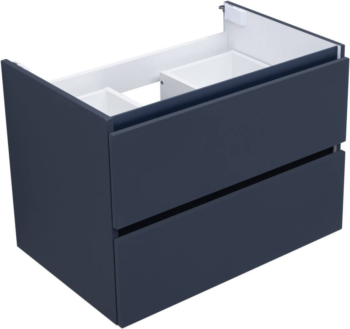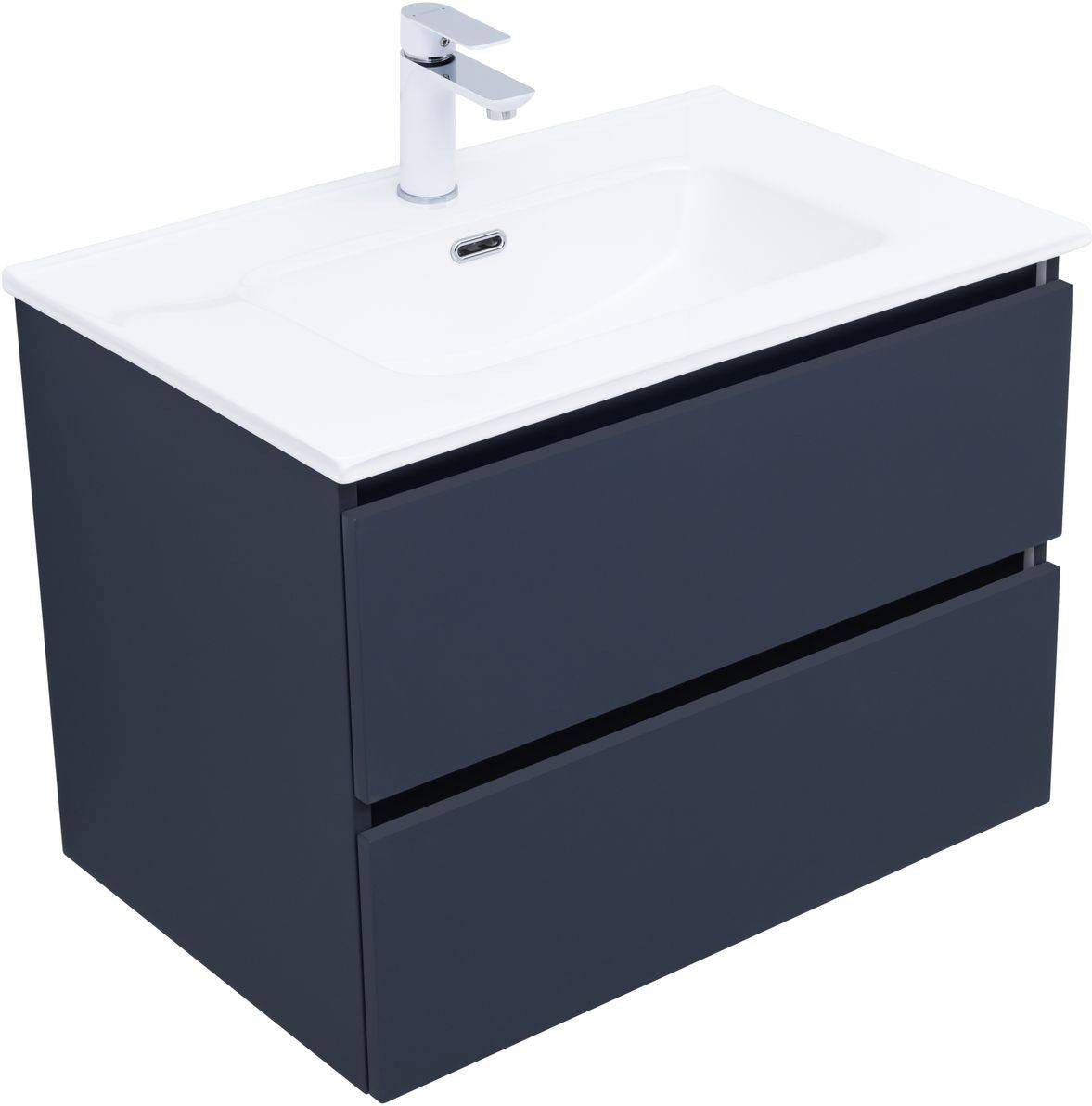 Фасады и корпуса из суперматовой пленки ПВХ обладают повышенной прочностью и эффектом «Soft touch», обеспечивая не только прекрасный внешний вид, но и приятные тактильные ощущения. Тумба оснащена двумя ящиками с механизмом доводчика, что обеспечивает плавное и бесшумное закрытие, а также высокую функциональность.