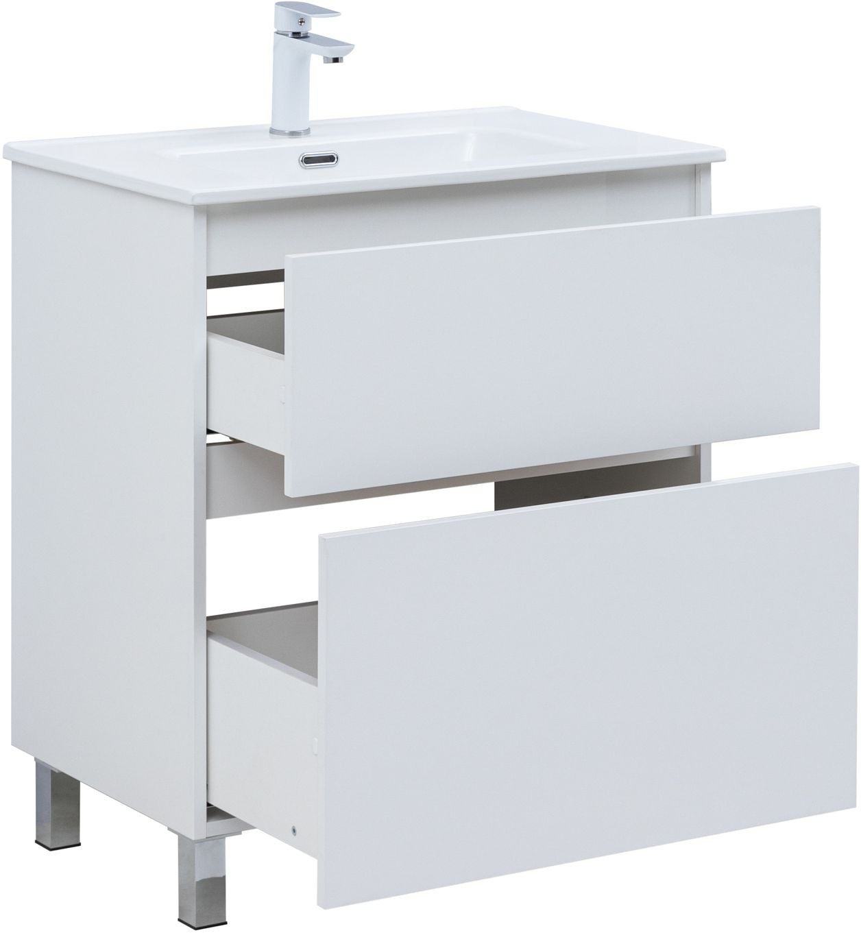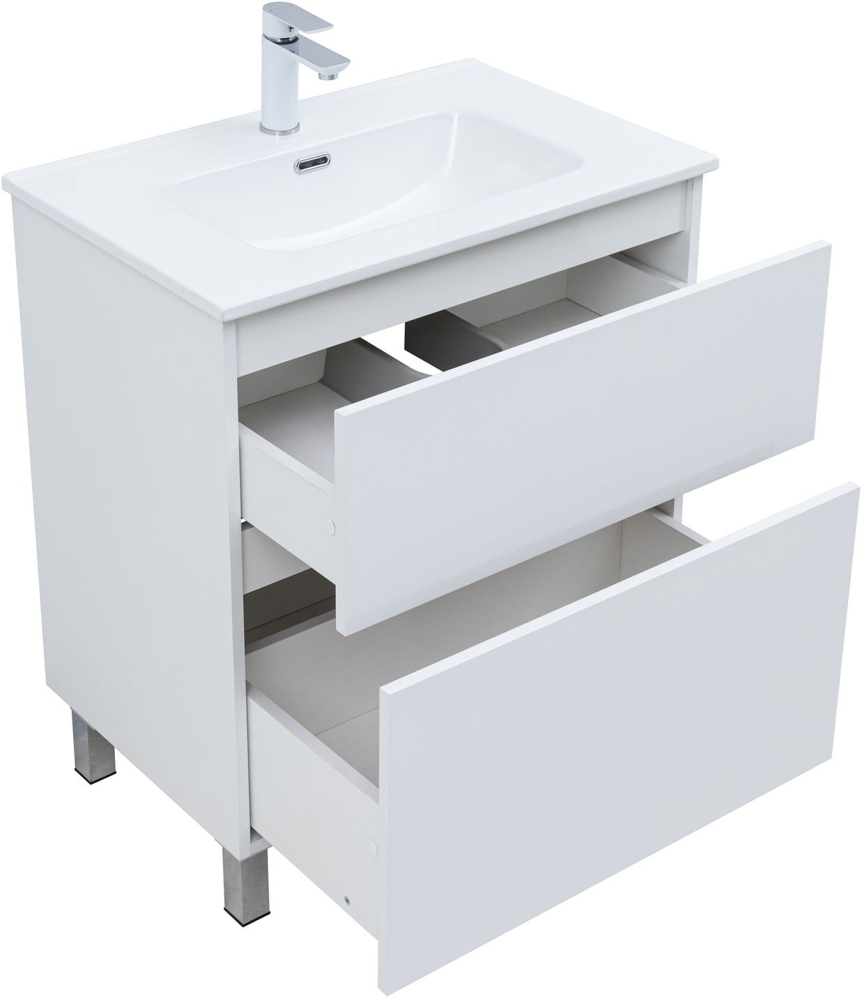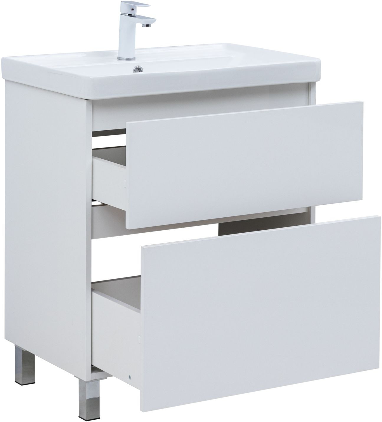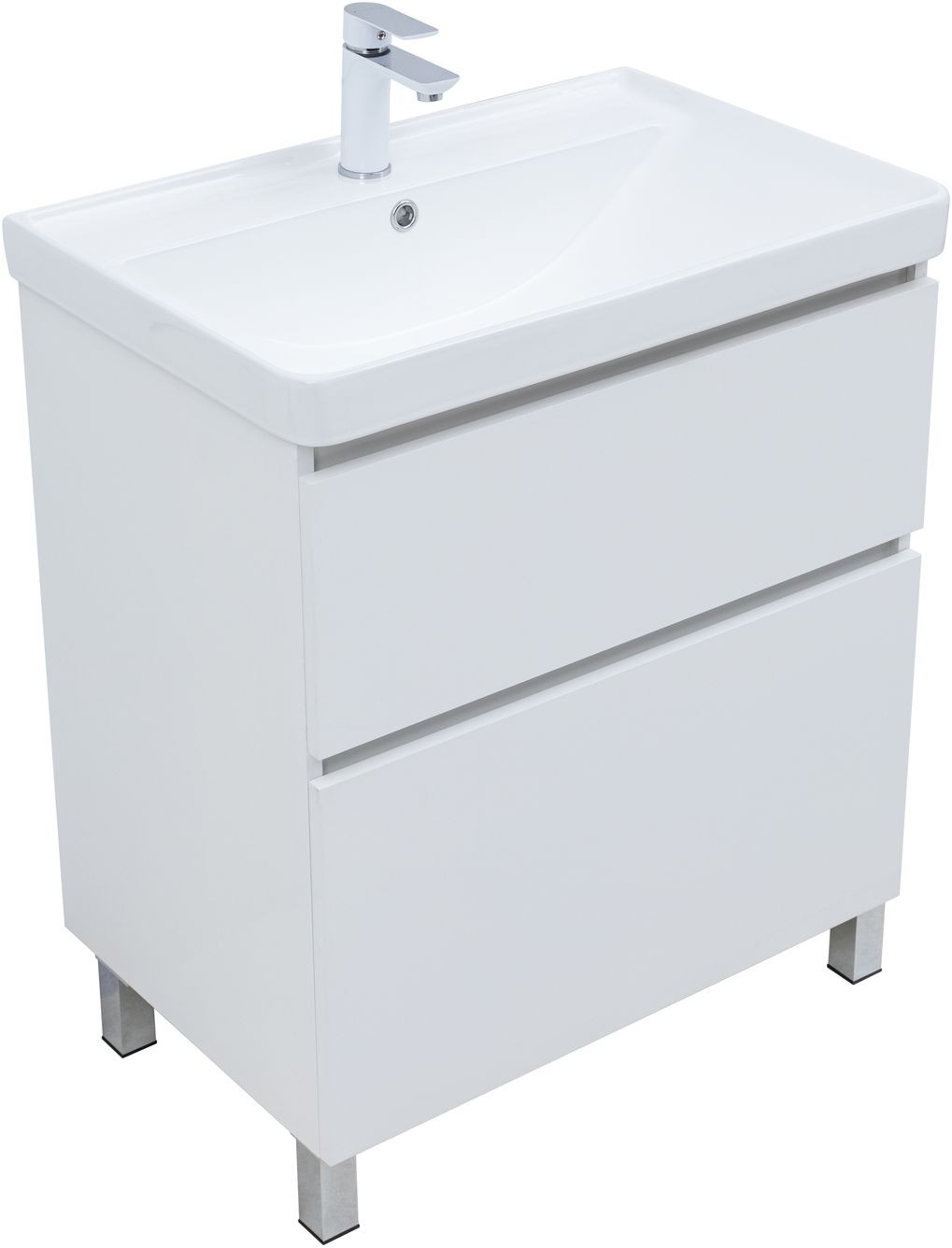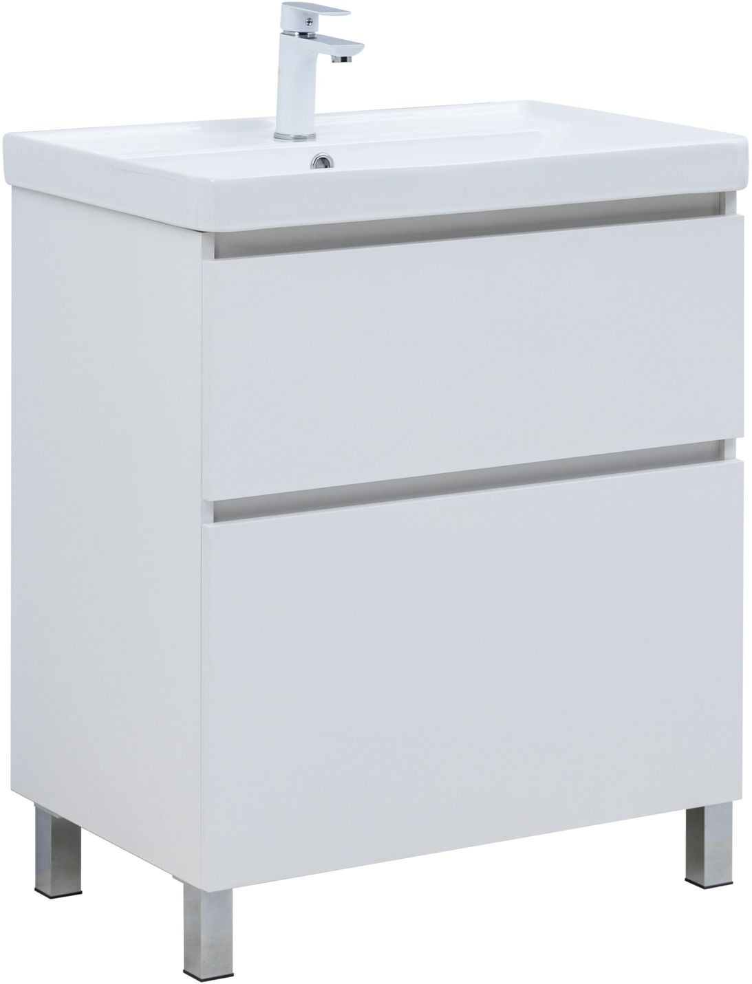 Тумба с раковиной Aquanet Вега 70 (Ирис) напольная 2 ящ. цв. белый глянец