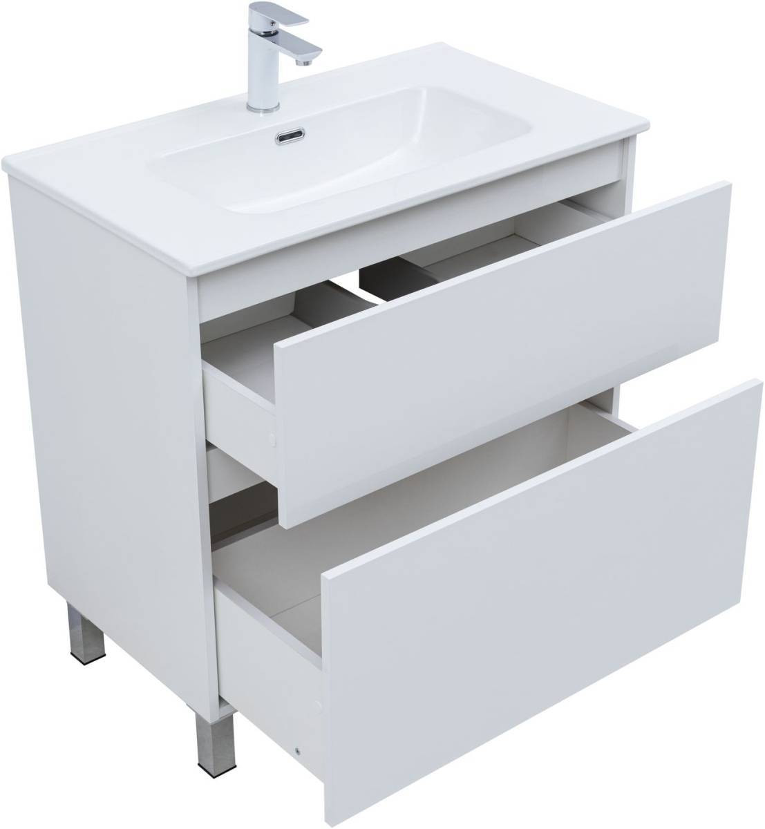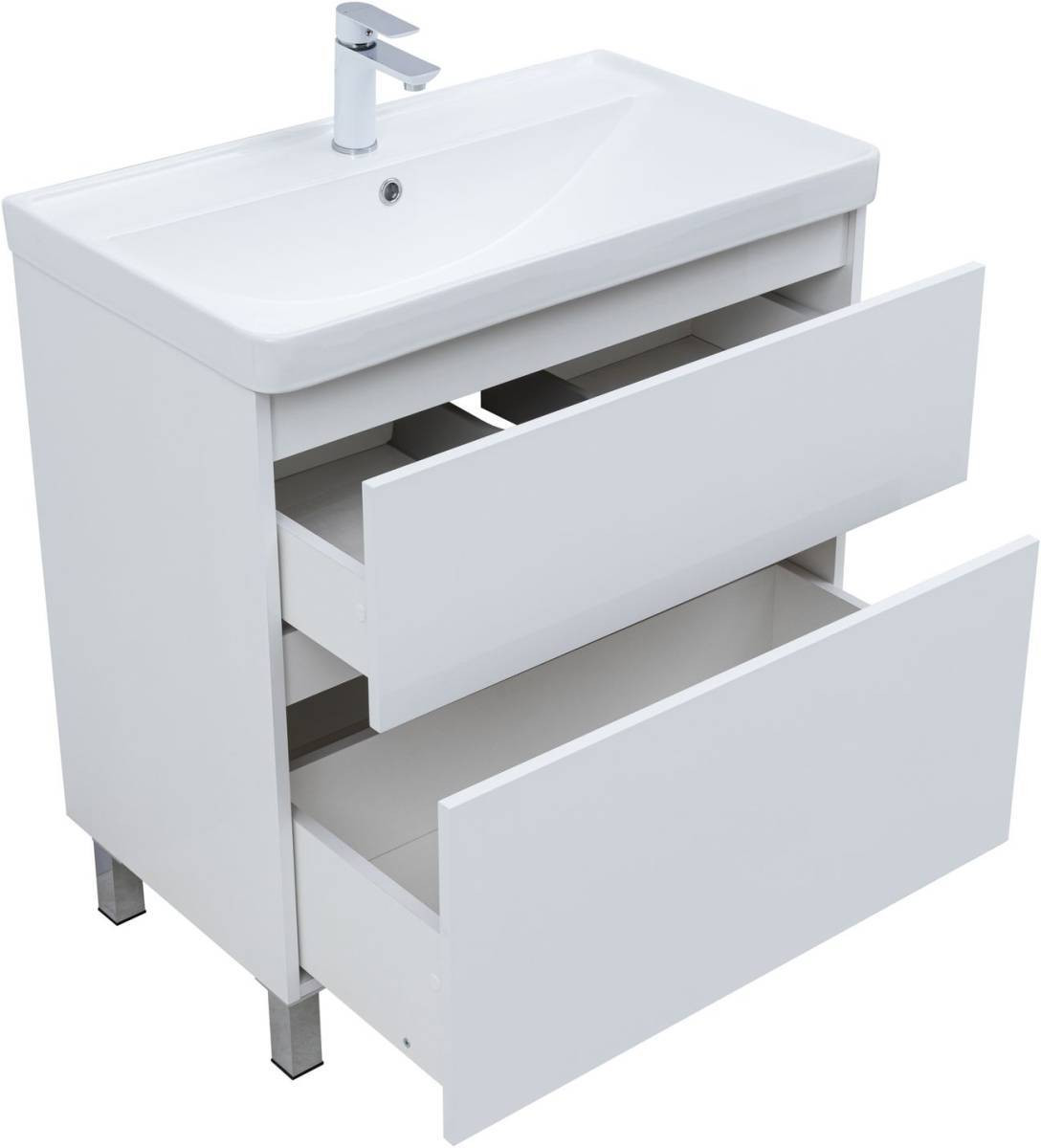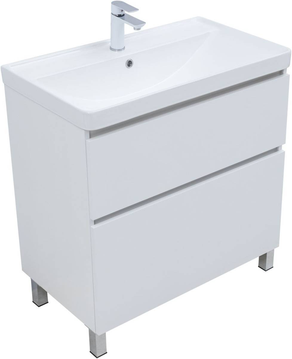 Тумба с раковиной Aquanet Вега 80 напольная, белый глянец + раковина Ирис