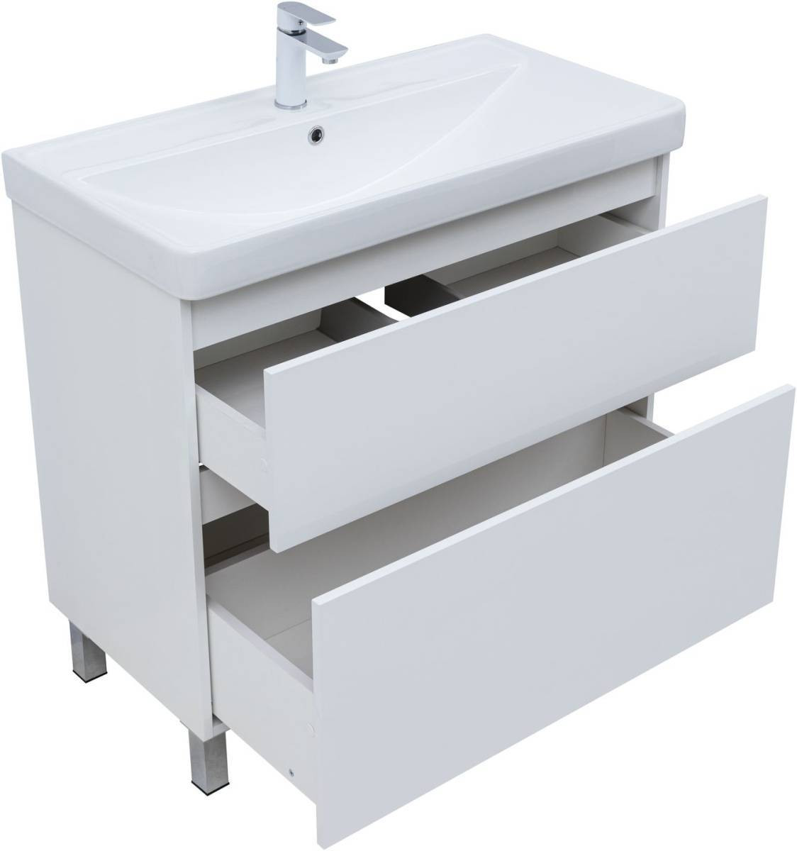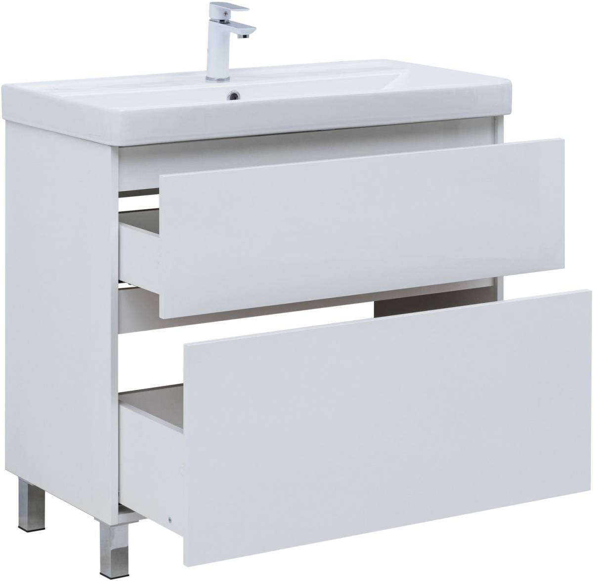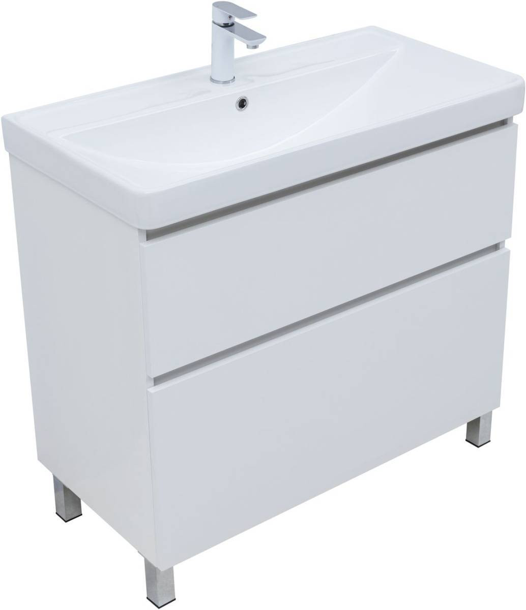 Тумба с раковиной Aquanet Вега 90 напольная, белый глянец + раковина Ирис