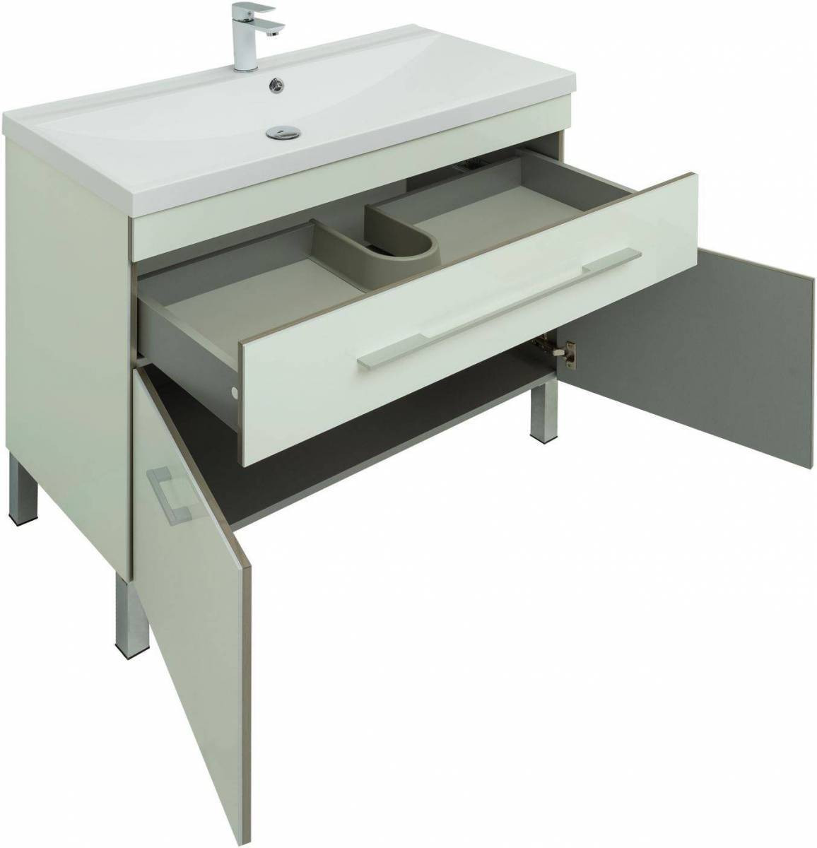 Тумба с раковиной Aquanet Верона 100 белый (напольная 1 ящик 2 дверцы)
