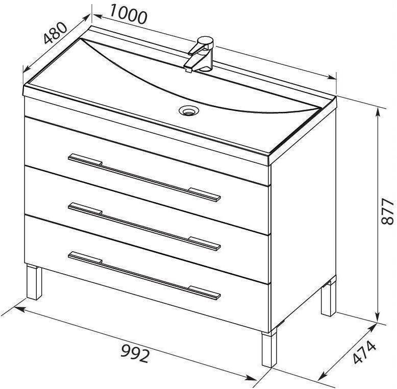 Тумба с раковиной Aquanet Верона 100 белый (напольная 3 ящика)