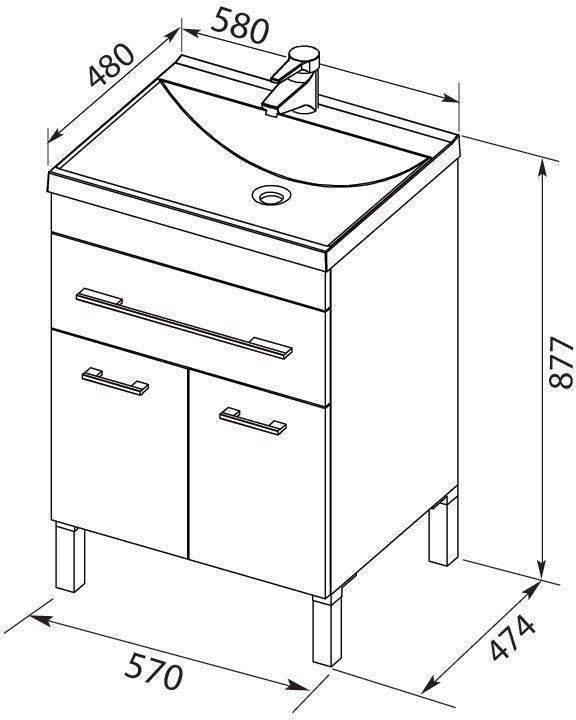 Тумба с раковиной Aquanet Верона 58 белый (напольная 1 ящик 2 дверцы)