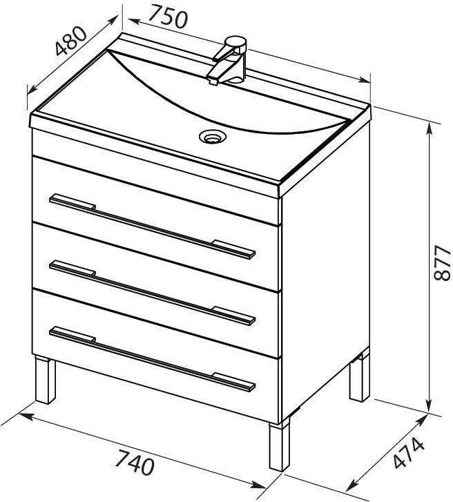Тумба с раковиной Aquanet Верона 75 белый (напольная 3 ящика)