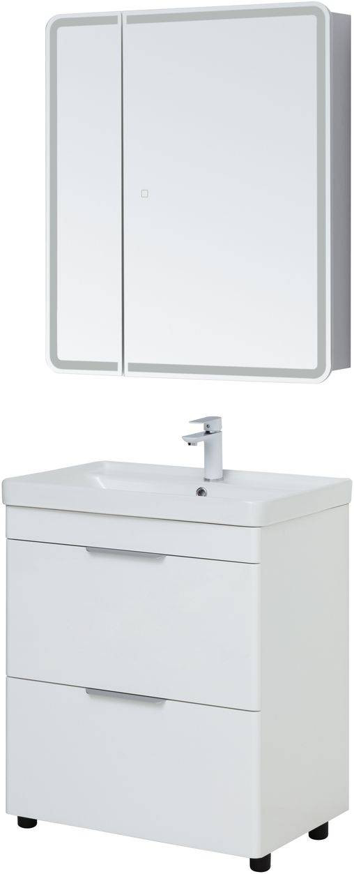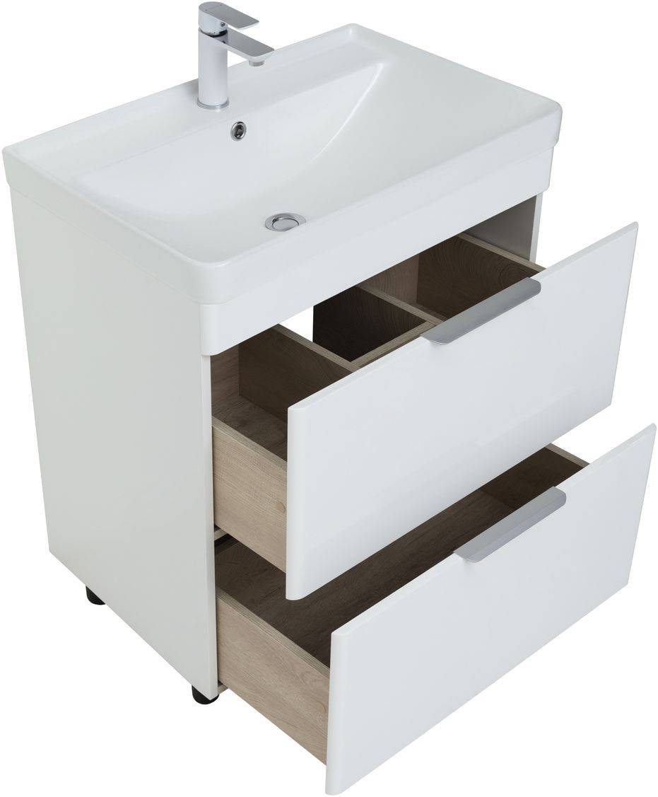 Тумба с раковиной напольная Aquanet Ирис new 70 белый глянец (2 ящика)