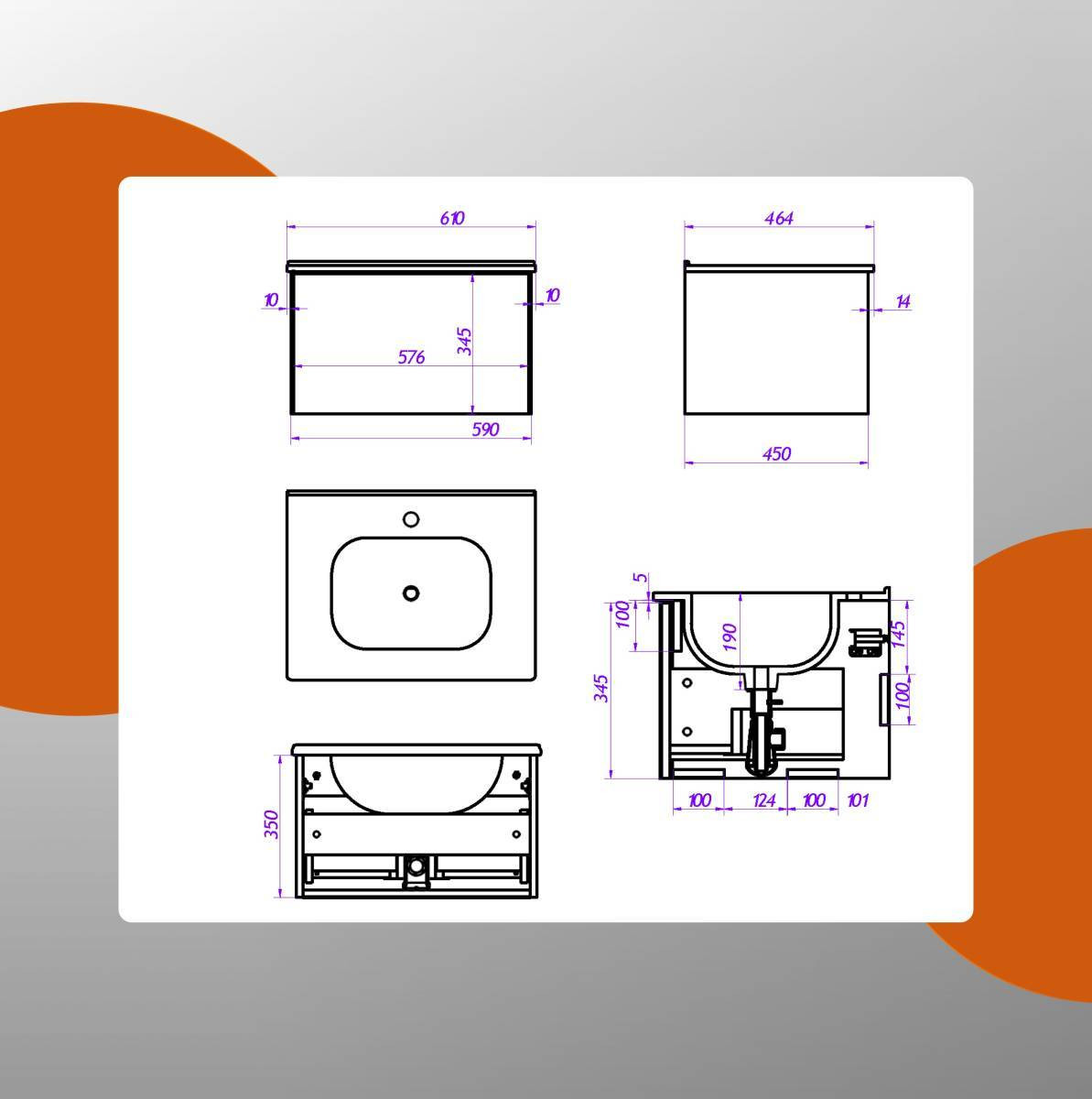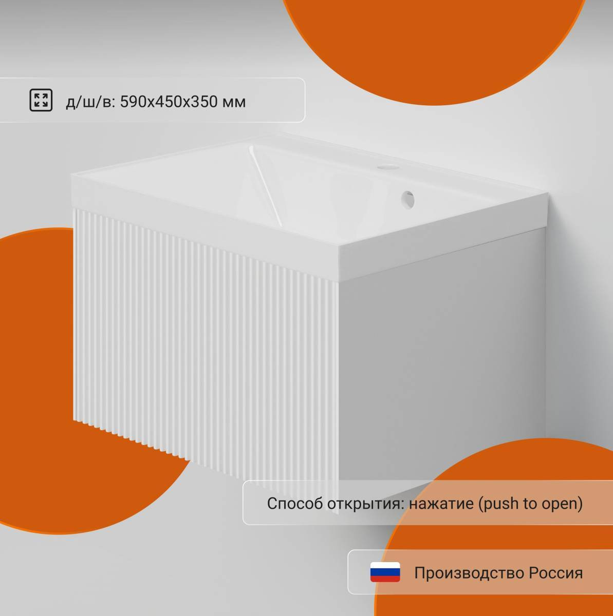 Тумба с раковиной в ванную 60, MioCasa Integro/ цвет белый матовый/ Подвесная тумба в ванную