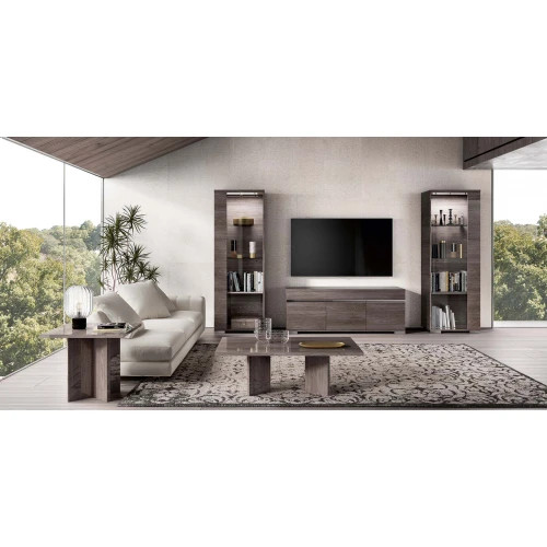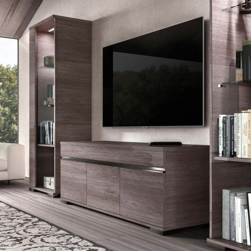 Тумба под ТВ с тремя распашными фасадами с интегрированной ручкой из коллекции Viola. Тумба имеет внутренние полки для хранения.
