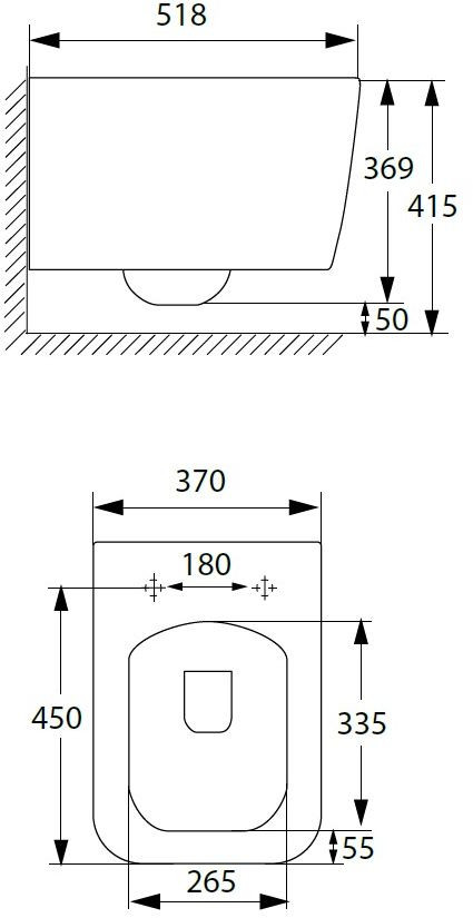 Безободковая конструкция унитаза с системой смыва Rimless обеспечивает равномерный поток воды, бесшумный и качественный смыв практически без брызг