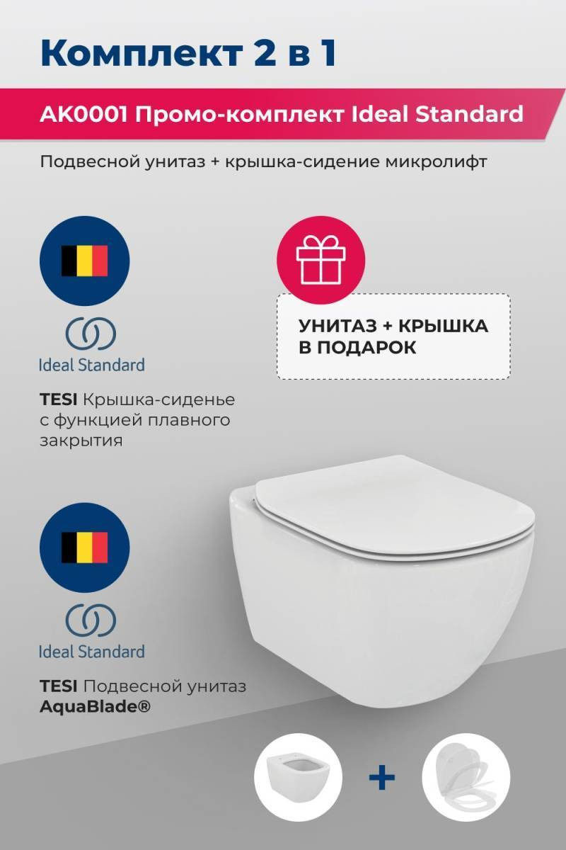 Унитаз подвесной Ideal Standard Tesi AK0001 с сиденьем микролифт