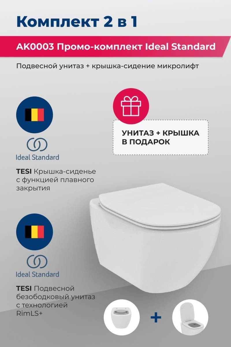 Унитаз подвесной Ideal Standard Tesi AK0003 с сиденьем микролифт