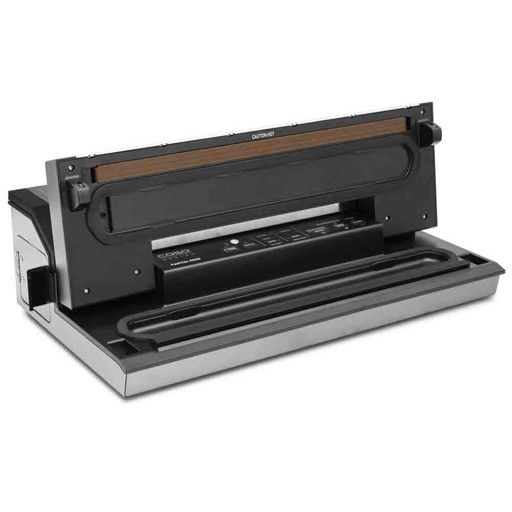 Благодаря мощному насосу мощностью в 200 Вт воздух откачивается со скоростью 20 литров в минуту, что позволяет качественно упаковывать продукты. Сварная планка рассчитана на пакеты и рулоны шириной до 40 см. Пакет запаивается качественным двойным сварным швом. Для удобного нарезания пленки встроенный рулонный контейнер для профессионального рулона фольги CASO XXL (40x1000 см) и раскладывающийся резак для пленки.