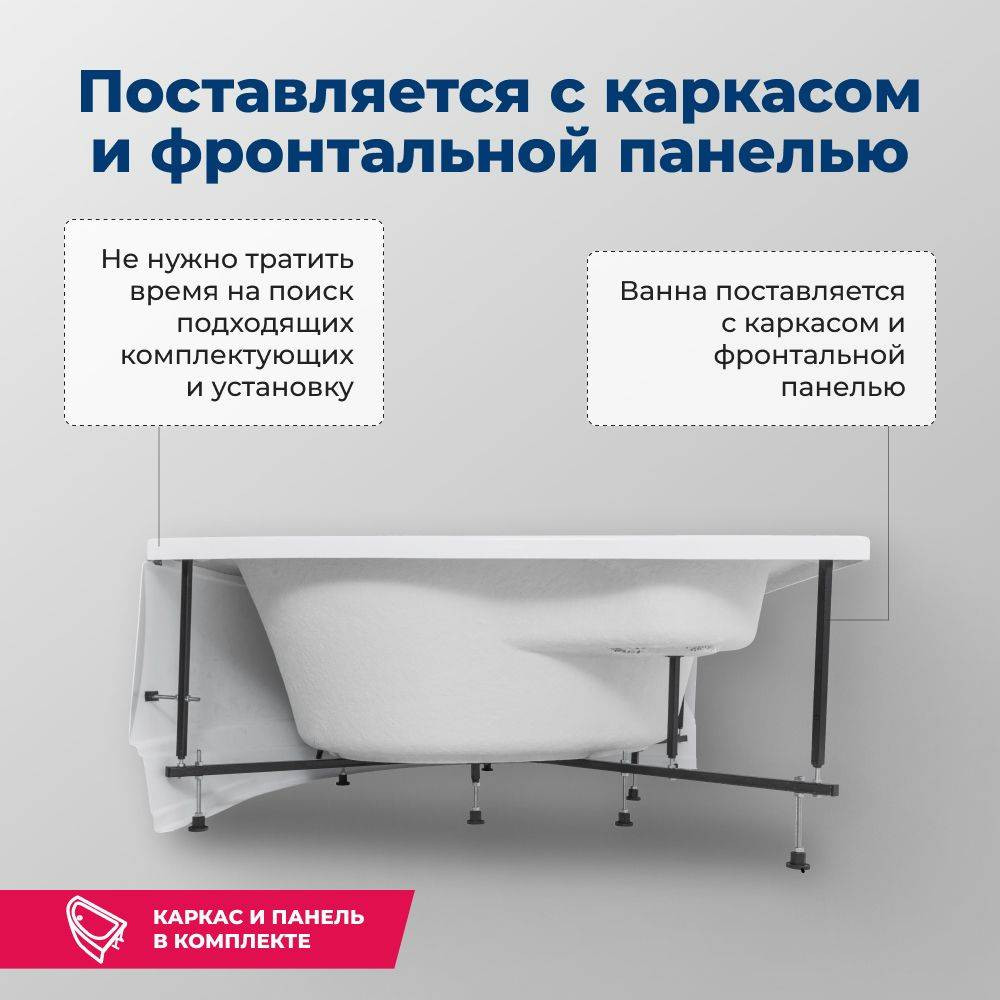 Акриловая ванна Aquanet Santiago 3 в 1, в комплектацию товара уже входит фронтальная панель и каркас. Угловая акриловая ванна Santiago – отличный выбор для тех, кто хочет сохранить баланс между красотой и функциональностью. Это одна из самых больших ванн в нашей коллекции, уместная в просторной ванной комнате. Плавные очертания ассоциируются с природным спокойствием, расслабляют ум и очаровывают взгляд. Угловая часть чаши образует собой удобное сиденье, которое значительно облегчит принятие душа и ванны пожилым членам семьи. Регулярное принятие ванн оказывает не только расслабляющее, но и целебное воздействие на организм в целом: разгружается опорно-двигательный аппарат, усиливается кровообращение, открываются и очищаются поры кожи. Благодаря свойствам акрила, такая ванна обладает высокой степенью гигиеничности – поверхность легко чистится, отсутствие микропор в материале делает его непроницаемым для бактерий. Кроме того, температура ванны из акрила соответствует температуре окружающей среды, поэтому вода в ней намного дольше остается горячей. Ванна уже установлена на жесткий сварной каркас из металлического профиля. Металлические детали каркаса подвергаются трехступенчатой обработке, когда сначала профильная труба проходит абразивную зачистку на специальном станке, после чего готовые детали обрабатывают каустической содой, и, просушив, покрывают с помощью электростатического распылителя молотковой краской по металлу. Это гарантирует равномерность окрашивания и стойкость покрытия. Дополнительно необходимо выбрать слив-перелив с сифоном.