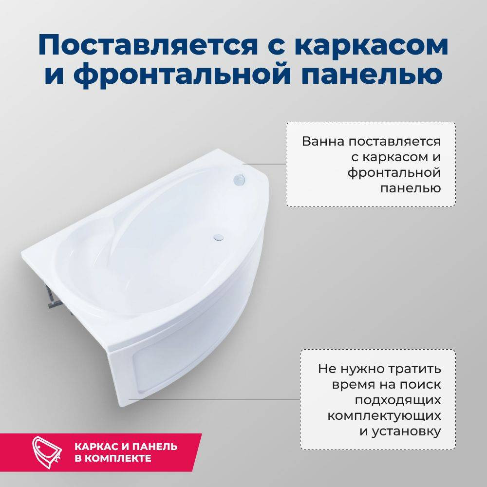Акриловая ванна Aquanet Jersey 3 в 1, в комплектацию товара уже входит фронтальная панель и каркас. Угловая акриловая ванна Jersey, устанавливаемая в левый угол ванной комнаты, позволит создать оазис умиротворения даже в небольшой ванной комнате. И здесь не случайны ассоциации с Джерси – островом в проливе Ла-Манш. Грациозная форма и плавные линии изгибов схожи с очертаниями капель воды – настолько живыми сумели их воплотить дизайнеры. В углу расположен выступ в виде полноценного душевого сиденья, которое можно использовать и как полку для банных принадлежностей или подлокотник. Угол наклона спинки чаши позволит достигнуть наибольшей релаксации и почувствовать себя максимально комфортно. Ванна уже установлена на жесткий сварной каркас из металлического профиля. Металлические детали каркаса подвергаются трехступенчатой обработке, когда сначала профильная труба проходит абразивную зачистку на специальном станке, после чего готовые детали обрабатывают каустической содой, и, просушив, покрывают с помощью электростатического распылителя молотковой краской по металлу. Это гарантирует равномерность окрашивания и стойкость покрытия. Дополнительно необходимо выбрать слив-перелив с сифоном.
