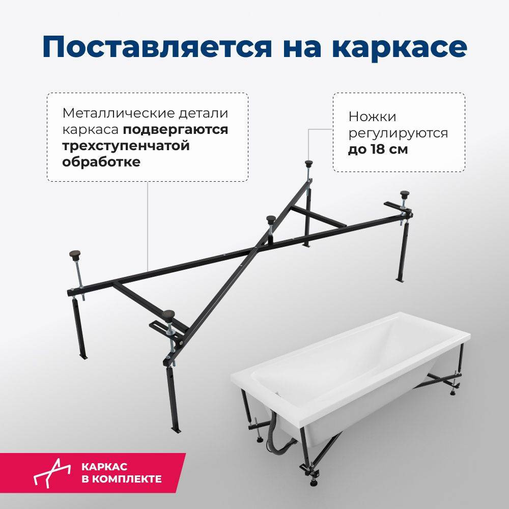 Дополнительно необходимо выбрать фронтальную и/или боковую панель и слив-перелив с сифоном. Рекомендуем к покупке слив-перелив для ванны Ани Пласт EMS701 (артикул EMS701).