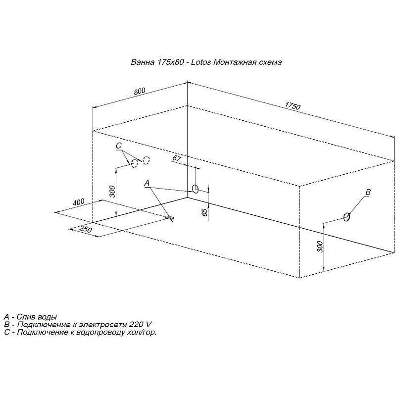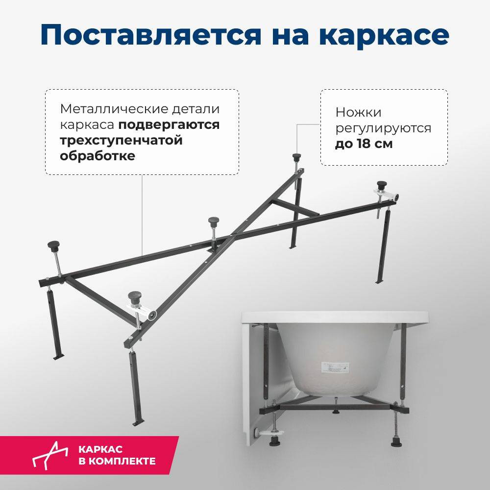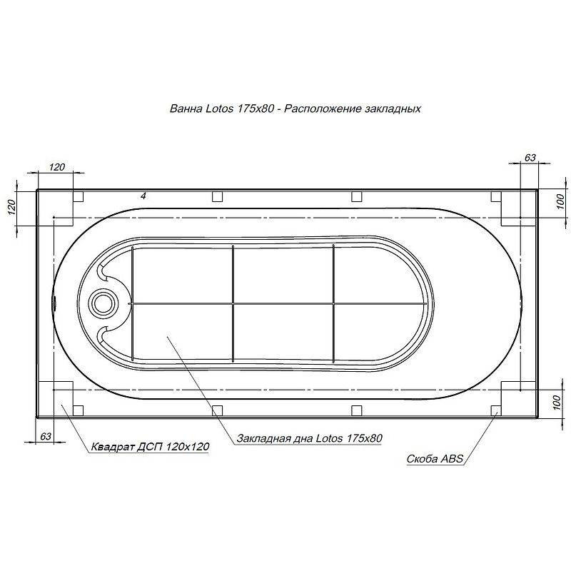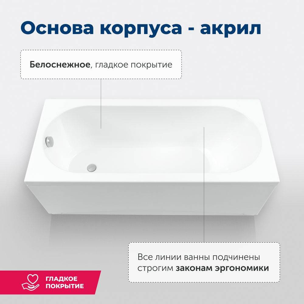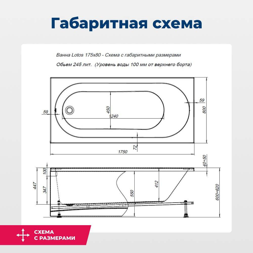 Ванна акриловая Aquanet 175x80 Lotos. Комплект 2 в 1: акриловая ванна, каркас