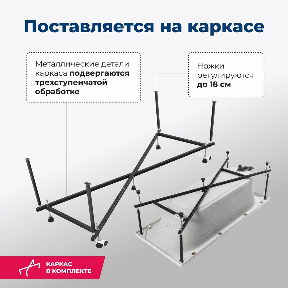 Ванна акриловая Aquanet 180x80 Lotos. Комплект 2 в 1: акриловая ванна, каркас