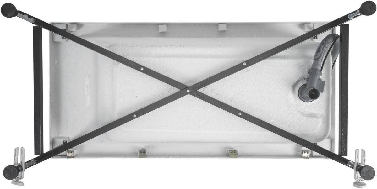 Ванна уже установлена на жесткий сварной каркас из металлического профиля. Металлические детали каркаса подвергаются трехступенчатой обработке, когда сначала профильная труба проходит абразивную зачистку на специальном станке, после чего готовые детали обрабатывают каустической содой, и, просушив, покрывают с помощью электростатического распылителя молотковой краской по металлу. Это гарантирует равномерность окрашивания и стойкость покрытия.