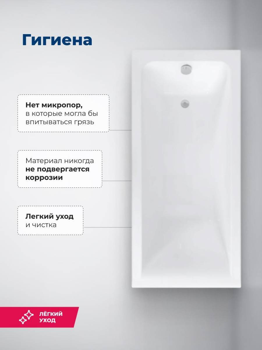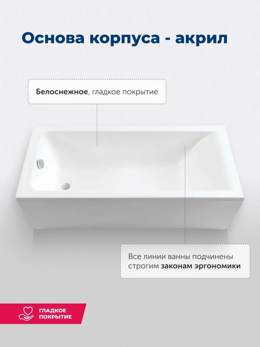 Обратите внимание, что это комплект: акриловая ванна, каркас и фронтальная панель. Акриловая ванна Aquanet Bright 170x70 создана с учетом растущего спроса на ванны простой прямоугольной формы в популярных размерах. Это модель с прямыми бортами и пологой спинкой, где соблюден идеальный угол для комфортного нахождения в ванне. Спинка плавно перетекает в бортик, поэтому релакс гарантирован даже без использования подголовника. Все линии ванны подчинены строгим законам эргономики. В современных условиях ширина ванны 70 см при длине 170 см - одно из популярных габаритов, так как прекрасно вписываются в стандартную планировку современных ванных комнат. Чаша в этой ванне устроена таким образом, что для обозначенных размеров в ней достигнут максимально возможный внутренний объем, а именно 190 литров, и это при комфортной глубине в 433 мм от слива ванны до борта. Ванна рассчитана на нагрузку свыше 300 кг, так что даже крепкий мужчина сможет без опаски находиться в ней. Двойной слой армирования обеспечивает надежность чаши, а закладные из МДФ-плит в местах наибольшей нагрузки усиливают эффект.