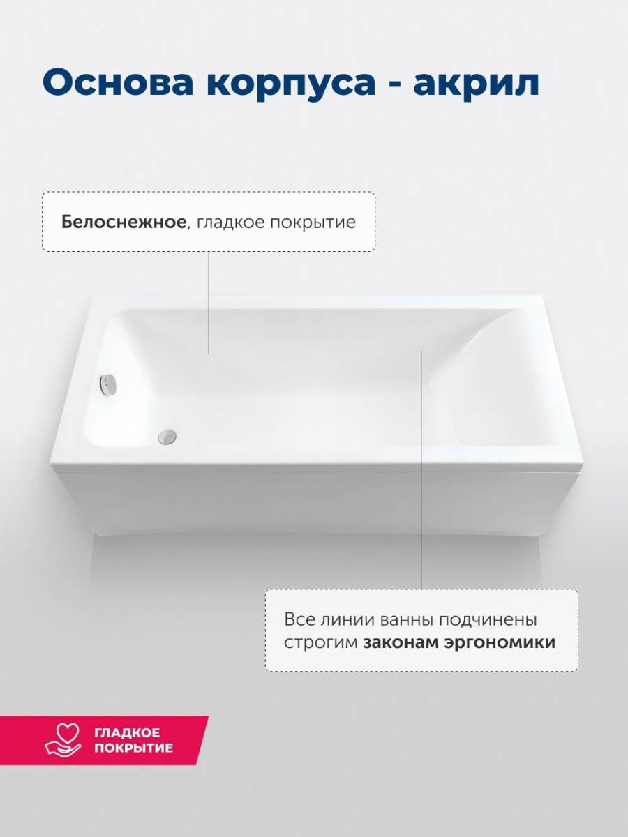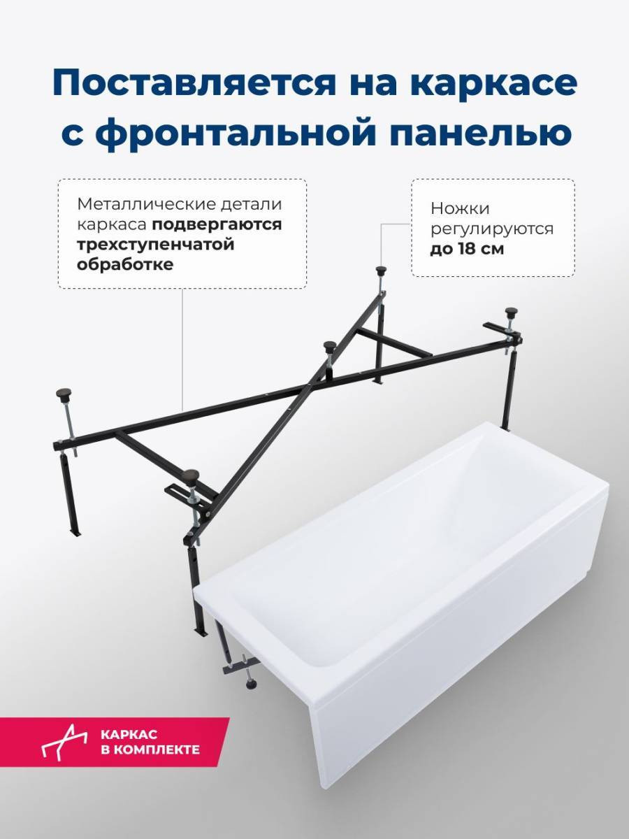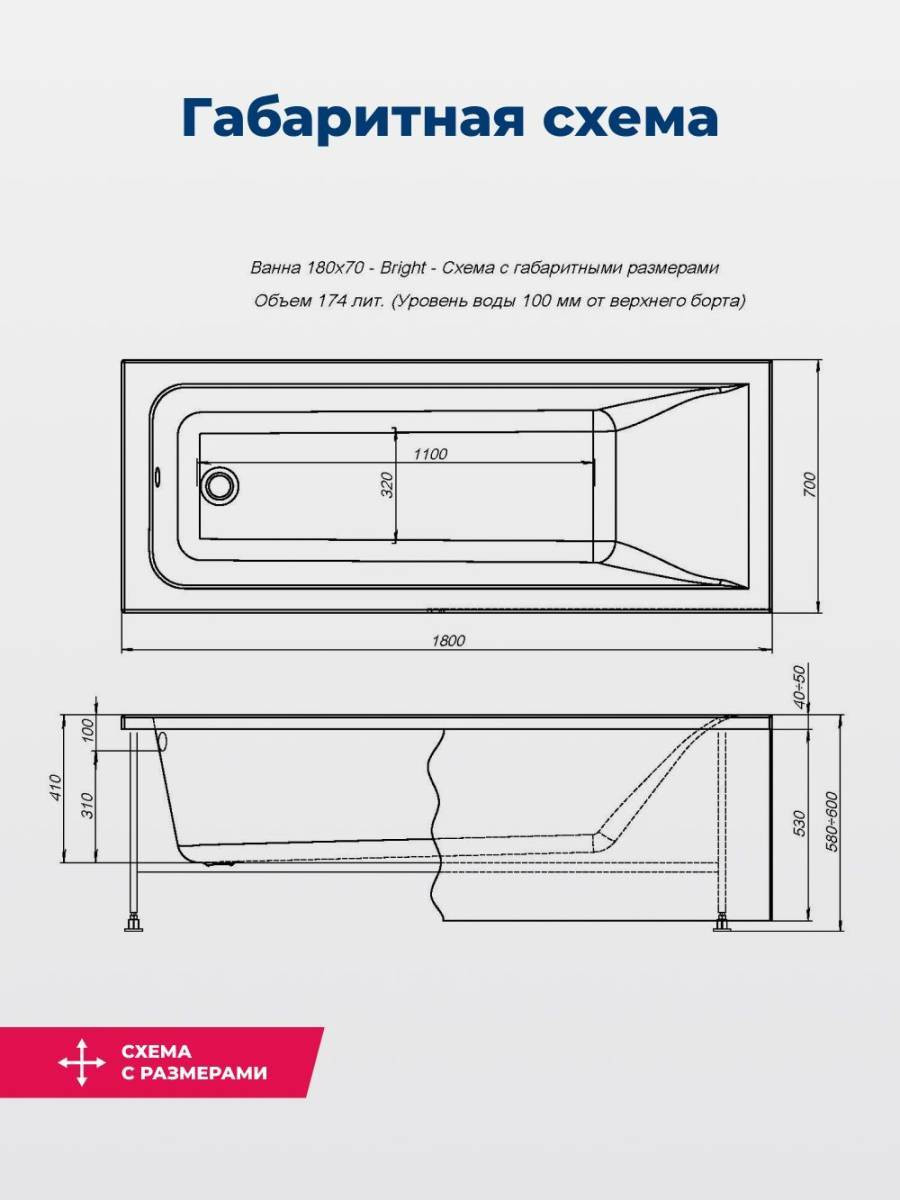 Обратите внимание, что это комплект: акриловая ванна, каркас и фронтальная панель. Акриловая ванна Aquanet Bright 180x70 создана с учетом растущего спроса на ванны простой прямоугольной формы в популярных размерах. Это модель с прямыми бортами и пологой спинкой, где соблюден идеальный угол для комфортного нахождения в ванне. Спинка плавно перетекает в бортик, поэтому релакс гарантирован даже без использования подголовника. Все линии ванны подчинены строгим законам эргономики. В современных условиях ширина ванны 70 см при длине 180 см - это наиболее востребованные габариты, так как прекрасно вписываются в стандартную планировку современных ванных комнат. Чаша в этой ванне устроена таким образом, что для обозначенных размеров в ней достигнут максимально возможный внутренний объем, а именно 174 литра, и это при комфортной глубине в 410 мм от слива ванны до борта. Ванна рассчитана на нагрузку свыше 300 кг, так что даже крепкий мужчина сможет без опаски находиться в ней. Двойной слой армирования обеспечивает надежность чаши, а закладные из МДФ-плит в местах наибольшей нагрузки усиливают эффект.