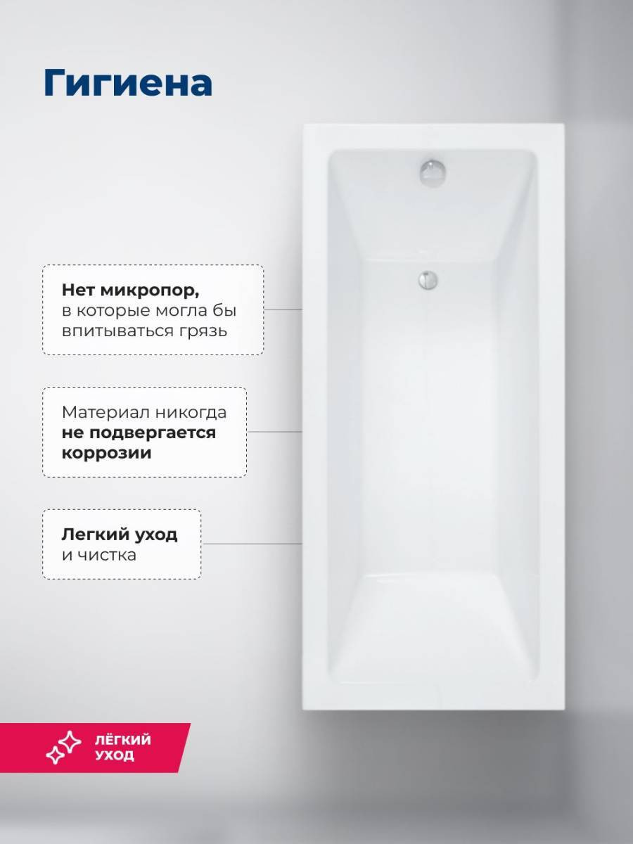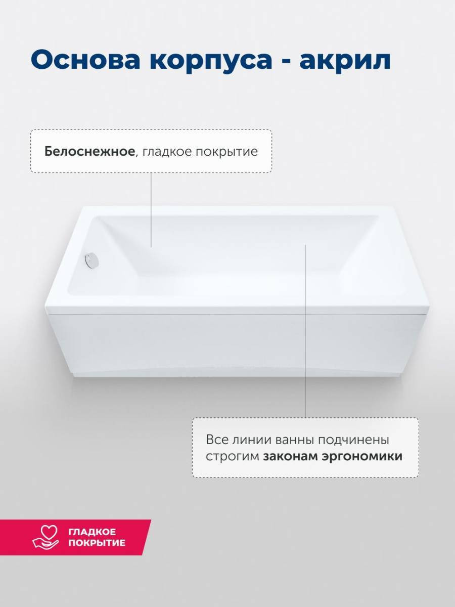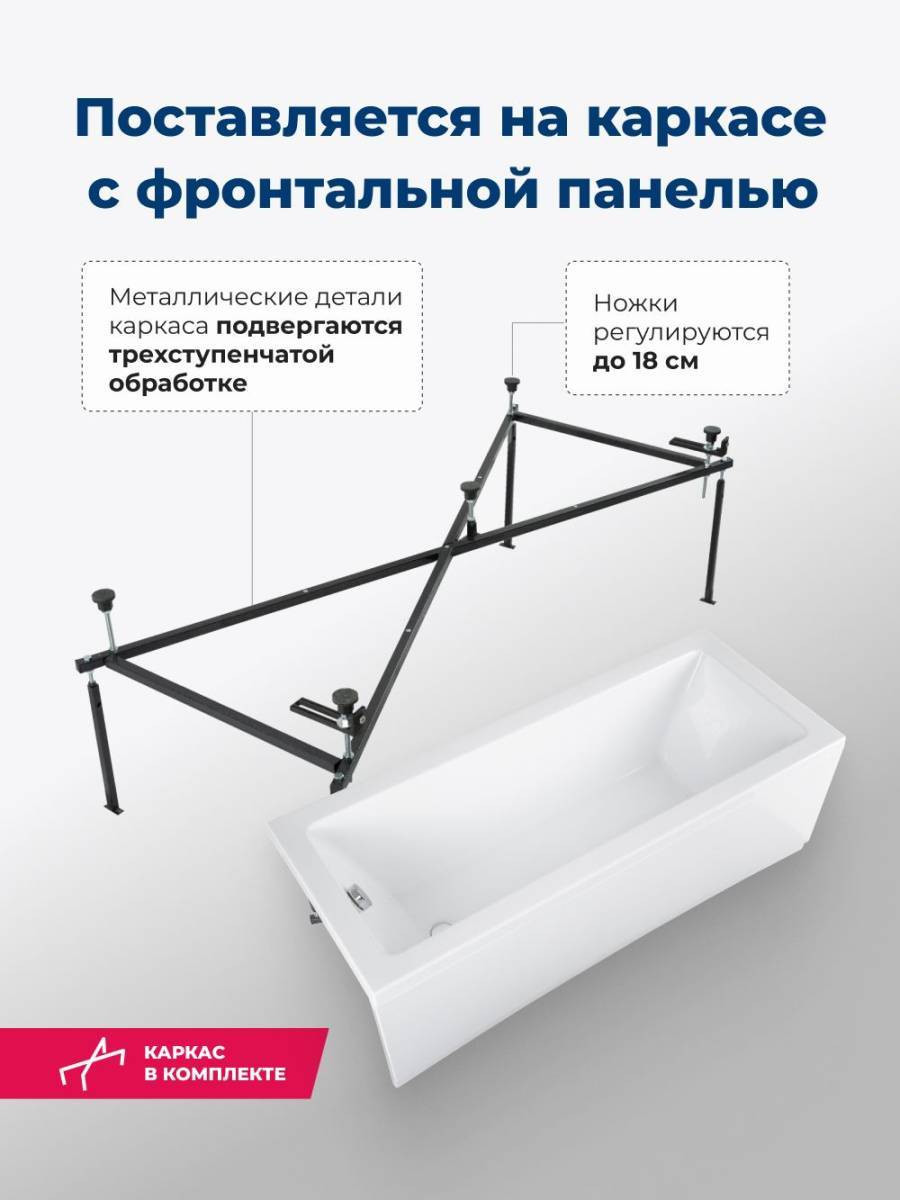 Широкие бортики по периметру подойдут для размещения гигиенических принадлежностей, емкостей с шампунем, кондиционером и гелем для душа. Спинка расположена под углом, обеспечивает комфорт и расслабление во время водных процедур. Ванна устанавливается на каркас, который идет в комплекте.