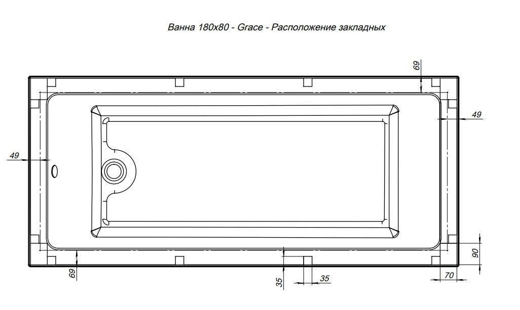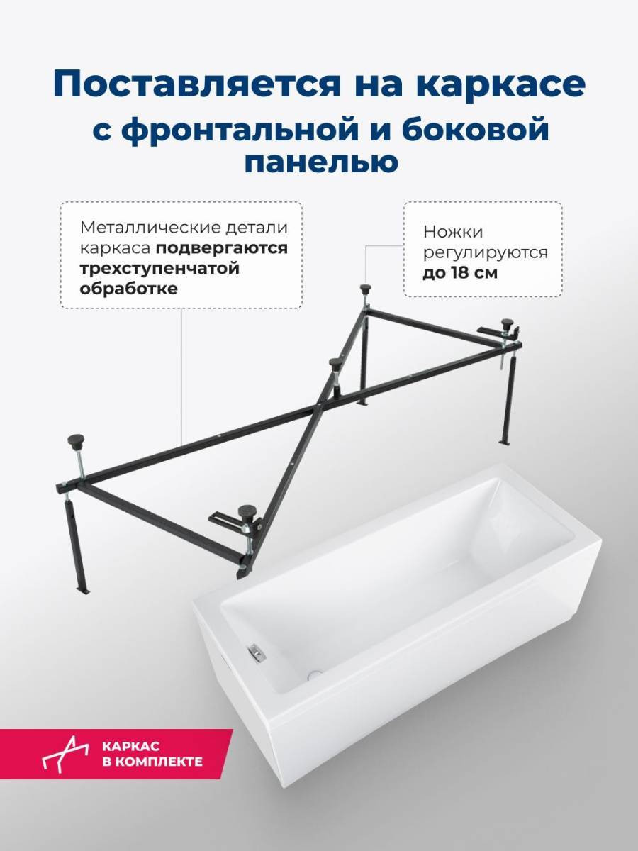Широкие бортики по периметру подойдут для размещения гигиенических принадлежностей, емкостей с шампунем, кондиционером и гелем для душа. Спинка расположена под углом, обеспечивает комфорт и расслабление во время водных процедур. Ванна устанавливается на каркас, который идет в комплекте.