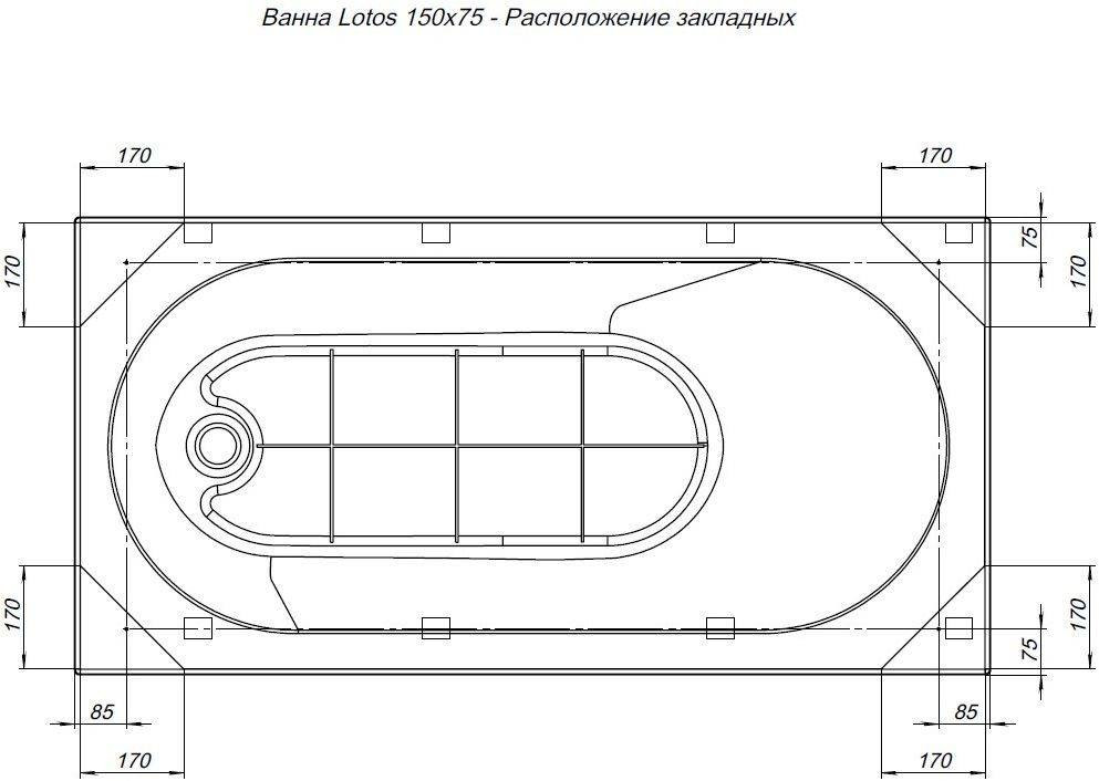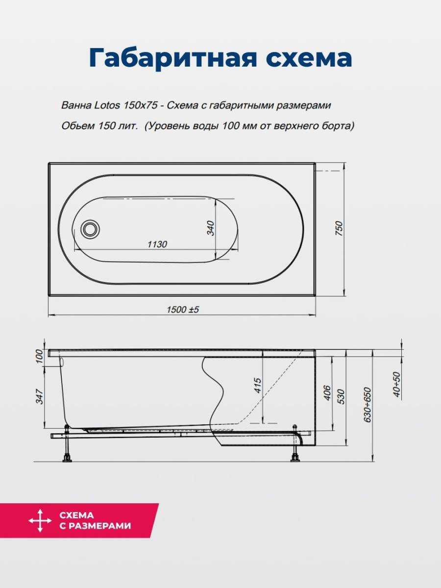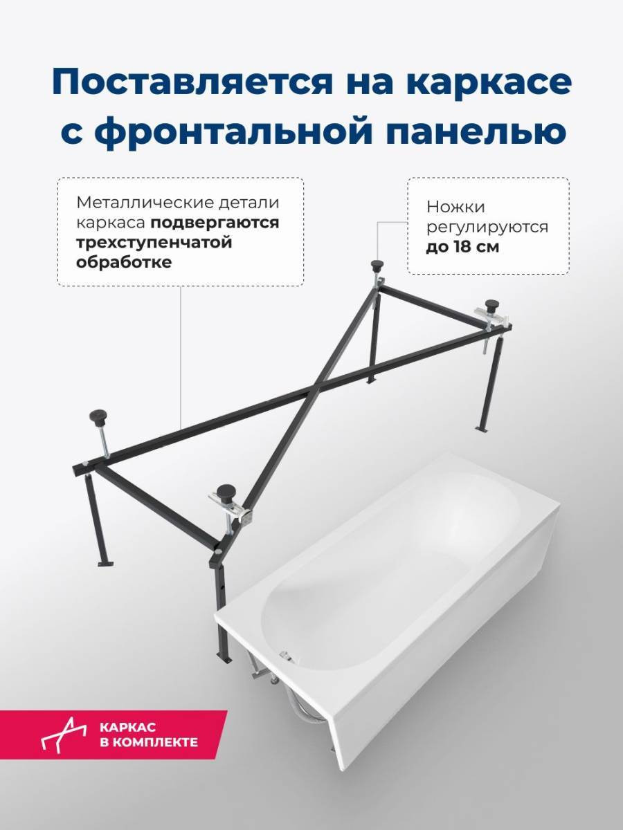 Ванна акриловая Aquanet LOTOS 150*75. Комплект 3 в 1: ванна, каркас, фронтальная панель