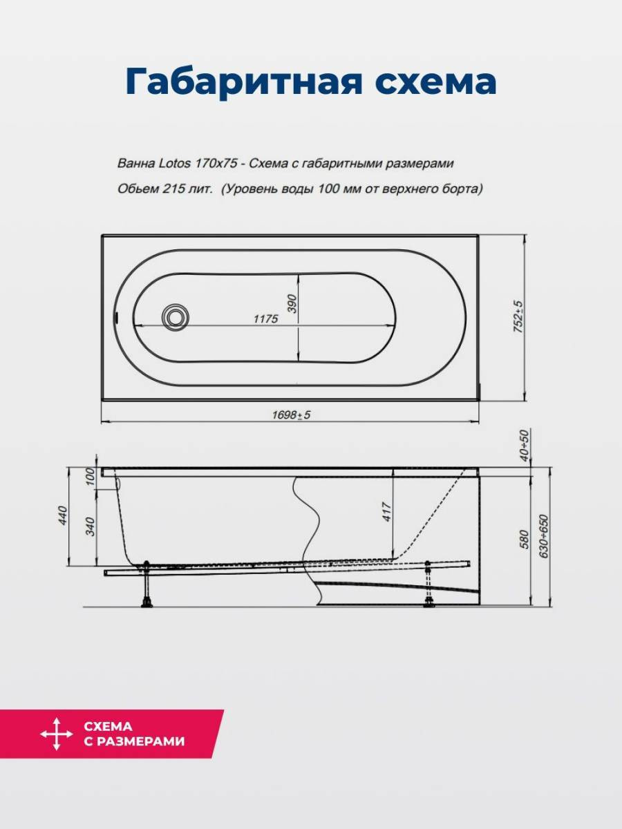 Обратите внимание, что это комплект: акриловая ванна, каркас, фронтальная и боковая панели. Акриловая ванна Aquanet Lotos 170x75 белого цвета с глянцевой поверхностью и плавными линиями выполнена в стиле модерн. За основу изготовления корпуса взят акрил. Материал отличается способностью хорошо поглощать звуки и долго удерживать тепло. Для повышения прочности применено многослойное армирование. Модель прямоугольной формы длиной 170 см, шириной 75 см и универсальной ориентации будет органично смотреться как в нише, так и при размещении вдоль стены.