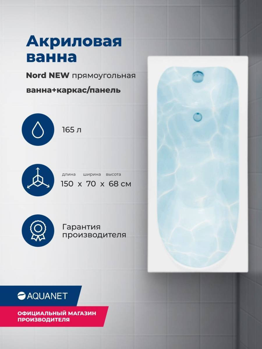 Обратите внимание, что это комплект: акриловая ванна, каркас и фронтальная панель. Прямоугольная акриловая ванна Nord подойдет не только ценителям классических форм и решений, но также тем, чьи ванные комнаты имеют небольшую площадь. Простая по форме, эта ванна, однако, имеет все необходимое для комфортного использования: эргономичное строение с рассчитанным углом наклона задней стенки позволит удобно расположиться даже человеку высокого роста, специальный выступ для подголовника обеспечит удержание головы сидящего над поверхностью воды, а компактные площадки по углам ванны предназначены для размещения банных принадлежностей. Особые свойства акрила делают его идеальным материалом для изготовления ванн: он прочен, прост в уходе, непроницаем для бактерий, легко ремонтируется. Еще одно важное преимущество акриловой ванны заключается в ее теплоемкости: вода здесь намного дольше остается горячей.