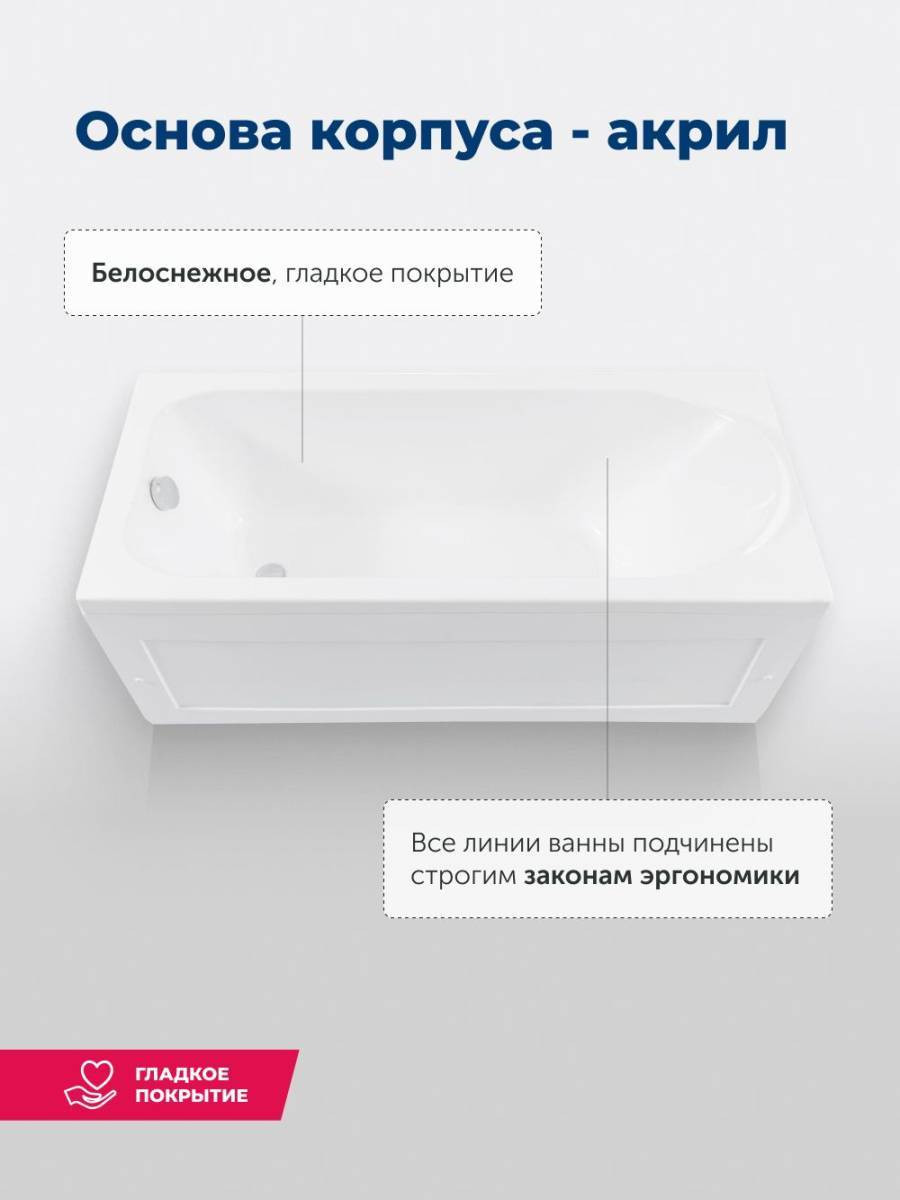Обратите внимание, что это комплект: акриловая ванна, каркас, фронтальная и боковая панели. Прямоугольная акриловая ванна Nord подойдет не только ценителям классических форм и решений, но также тем, чьи ванные комнаты имеют небольшую площадь. Простая по форме, эта ванна, однако, имеет все необходимое для комфортного использования: эргономичное строение с рассчитанным углом наклона задней стенки позволит удобно расположиться даже человеку высокого роста, специальный выступ для подголовника обеспечит удержание головы сидящего над поверхностью воды, а компактные площадки по углам ванны предназначены для размещения банных принадлежностей. Особые свойства акрила делают его идеальным материалом для изготовления ванн: он прочен, прост в уходе, непроницаем для бактерий, легко ремонтируется. Еще одно важное преимущество акриловой ванны заключается в ее теплоемкости: вода здесь намного дольше остается горячей.