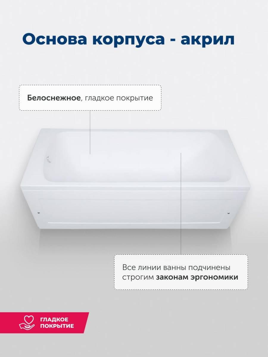Обратите внимание, что это комплект: акриловая ванна, каркас и фронтальная панель. Ванна прямоугольная Aquanet Roma 170x70 выполнена в цвете «белый глянец» и имеет удобную форму. Ее глубина составляет 392 мм, благодаря чему ванна способна вместить в себя 159 литров воды. На днище ванны предусмотрено антискользящее покрытие, выполненное в виде небольших бугорков на поверхности. В изголовье предусмотрен подголовник. Прекрасный образец достойного качества в бюджетном воплощении.