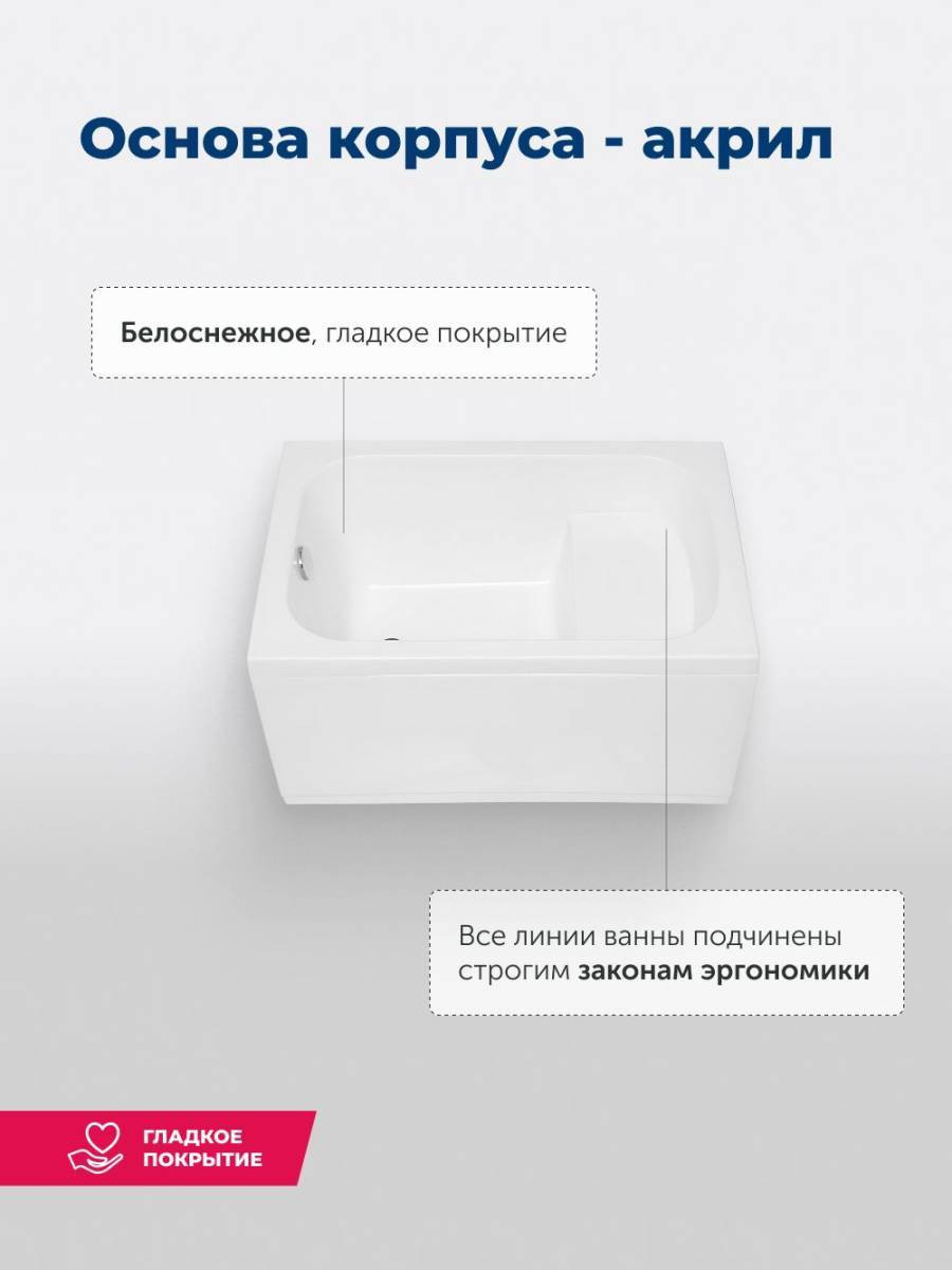 Обратите внимание, что это комплект: акриловая ванна, каркас и фронтальная панель. Акриловая ванна Aquanet Seed 110x70 - суперкомпактная модель, которая поместится даже в самом скромном по размерам помещении. В ширину она 70 см, а вот длину имеет необычно маленькую – всего 110 см. Принимать ванну взрослому человеку в ней можно только сидя, поэтому для удобства в ванне предусмотрено сидение. Впрочем, даже в таком положении при глубине 372 мм от слива ванны до борта в нее можно погрузиться всем телом. В ванну входит 80 литров воды. Маленькая ванна Seed по качеству не уступает своим более габаритным собратьям. Она сформована из сантехнического акрила европейского производства, покрыта для прочности двойным слоем стеклоровинга с установкой в местах наибольшей нагрузки закладных из МДФ-плиты. У нее широкие борта, которые подойдут для установки каскадного смесителя или которые можно использовать в качестве полочки для гигиенических средств. А поверхность чаши белоснежная и глянцевая, приятная на ощупь.
