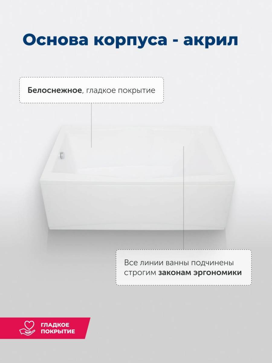 Обратите внимание, что это комплект: акриловая ванна, каркас, фронтальная и боковая панели. Вместительная акриловая ванна 190х100 Vega станет вашим любимым местом проведения досуга. Увеличенные габариты чаши позволят с комфортом насладиться принятием горячей расслабляющей ванны даже вдвоем, в такой ванной без преувеличения можно почувствовать себя как в бассейне. Прямоугольная форма позволит гармонично вписать эту модель как в классический, так и современный интерьер. Особые свойства акрила делают его идеальным материалом для изготовления ванн: он прочен, прост в уходе, непроницаем для бактерий, легко ремонтируется, поверхность чаши менее скользкая по сравнению с чугунными аналогами. Еще одно важное преимущество акриловой ванны заключается в ее теплоемкости: вода здесь намного дольше остается горячей.