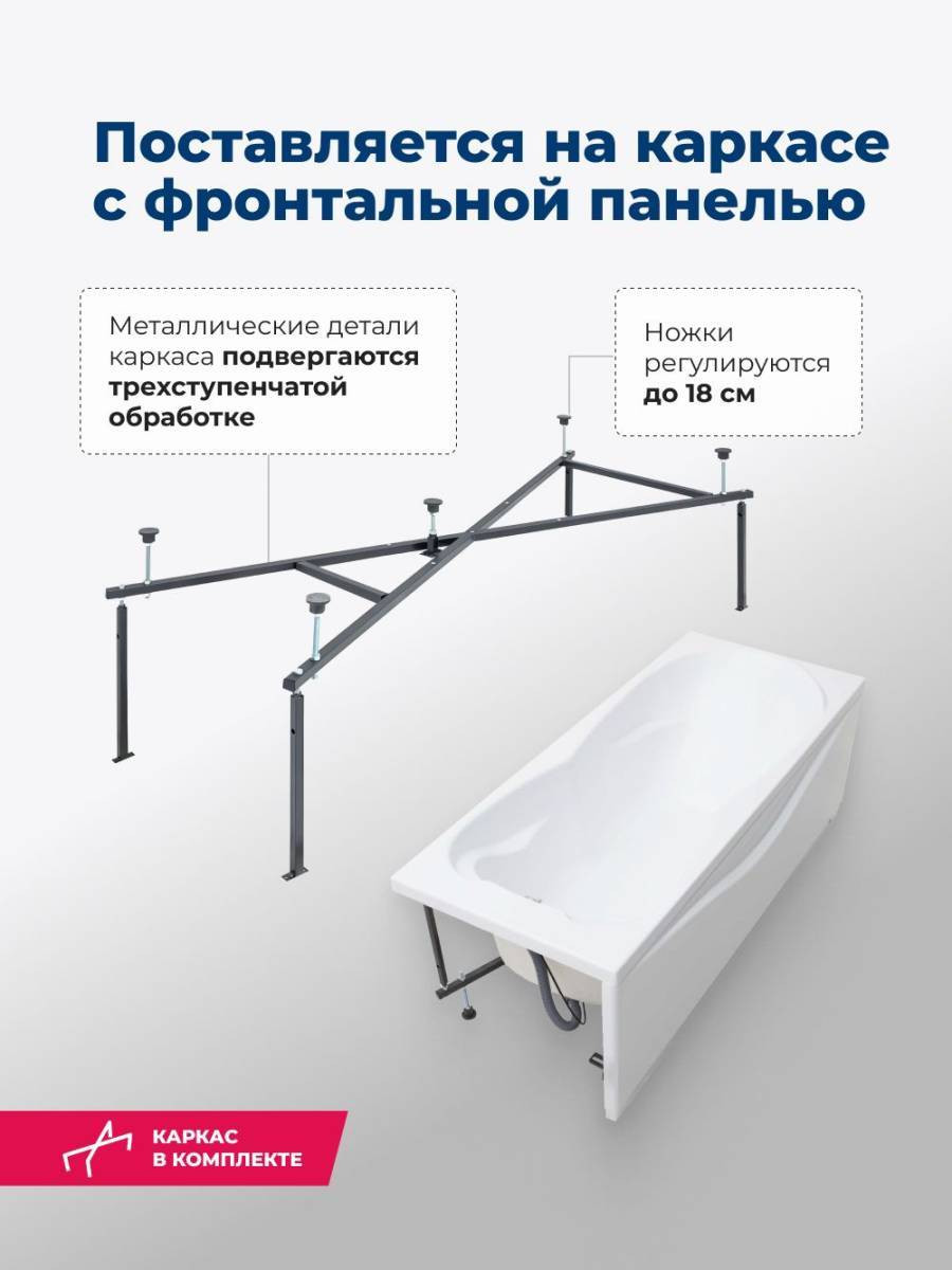 Обратите внимание, что это комплект: акриловая ванна, каркас и фронтальная панель. Акриловая ванна Aquanet Viola 180x75 - это маленькое море в белоснежных акриловых берегах, которое уместится в ванной комнате, где найдется свободное место размером 180х75 см. Глубина ванны от слива до борта составляет 453 мм. Она вмещает 227 литров воды. Для изготовления ванны Viola использован сантехнический акрил толщиной 4 мм. Изделие укреплено армированием в несколько слоев стеклоровинга, благодаря которому оно надежно и без труда выдержит нагрузку в 300 кг.